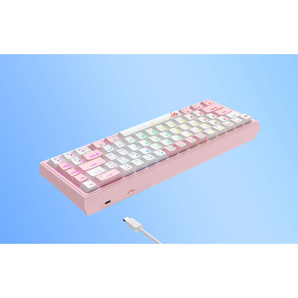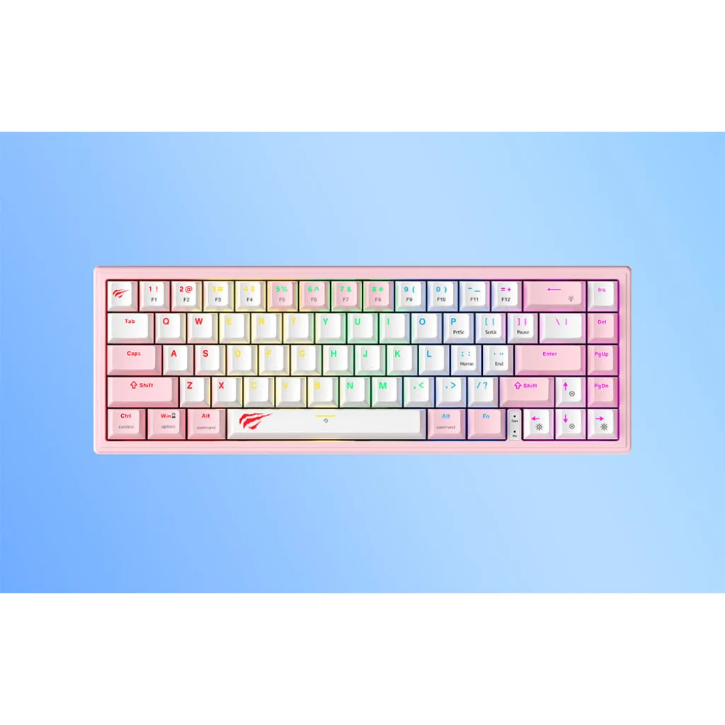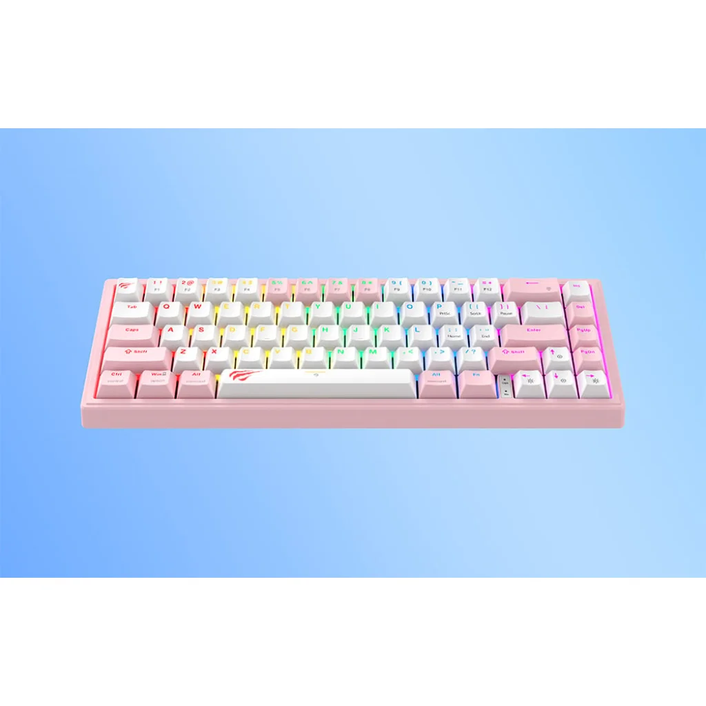 A Havit KB874L egy stílusos mechanikus billentyűzet, amely egyesíti a teljesítményt, az esztétikát és a funkcionalitást. Rózsaszín és fehér színösszeállításának és RGB háttérvilágításának köszönhetően bármely játékállványon kitűnhet. A billentyűzet kompakt mérete és ergonomikus kialakítása ideális választás mind a játékosok, mind pedig az elegáns munkaeszközt keresők számára.