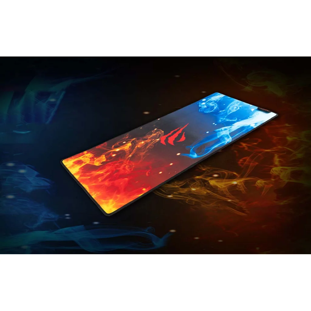Az MP845 nem csak funkcionális, hanem látványos is. A merész "tűz és jég" grafika, a Havit ikonikus logójával a középpontban, azonnal megragadja a tekintetet, és egyedülálló hangulatot teremt az asztalodon. A 700x300x3mm-es kiterjesztett méret bőséges helyet biztosít nemcsak az egér, hanem a billentyűzet számára is, ezzel egységes és letisztult gaming felületet hozva létre.