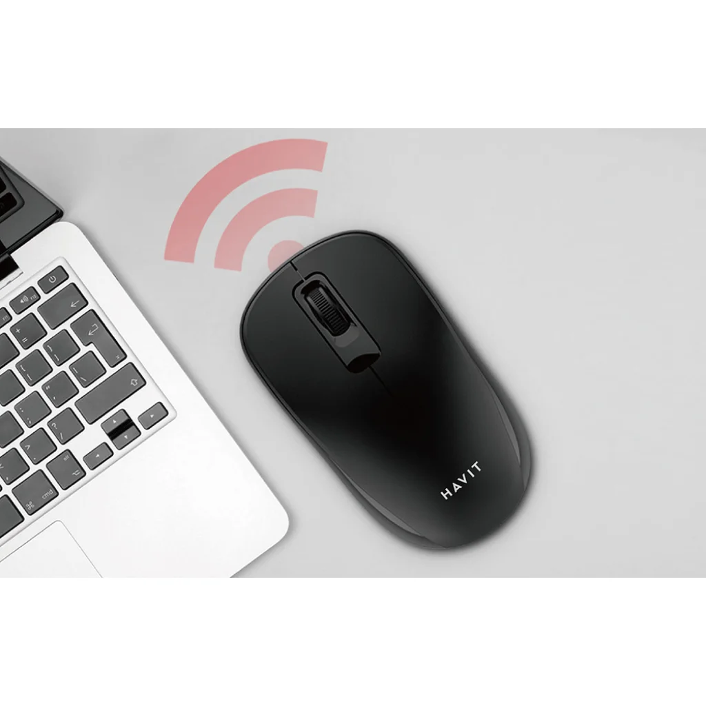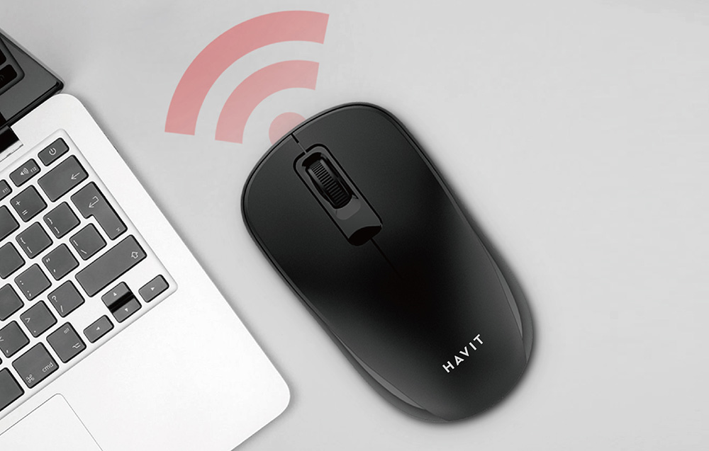 A kábel nem korlátozza többé mozdulatait. A Havit egér vezeték nélkül működik, 2.4 GHz-en csatlakozik. A jel hatótávolsága 10 méter egy 360°-os sugarú körben. Ráadásul a plug&play funkciónak köszönhetően a csatlakoztatás pillanatok alatt megtörténik. Nem szükséges további illesztőprogramokat telepíteni, csak csatlakoztassa a számítógéppel mellékelt micro USB vevőt. Az egeret egy AA elem táplálja, ami hosszú üzemidőt biztosít az eszköznek.