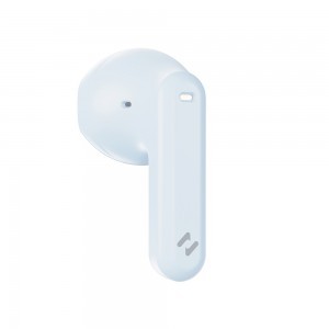 A félfülben hordható (half-in-ear) kialakításnak köszönhetően a fülhallgatók rendkívül kényelmesek, még hosszabb távú használat során is, anélkül, hogy nyomást gyakorolnának a fülcsatornára. Könnyű súlyuk és ergonomikus, hosszú szárú formájuk alig észrevehetővé teszi őket. A töltőtok és a fülhallgatók elegáns, pasztell kék színben pompáznak, ami modern és letisztult megjelenést kölcsönöz nekik. A kompakt, lekerekített töltőtok könnyedén elfér a zsebedben vagy a táskádban.