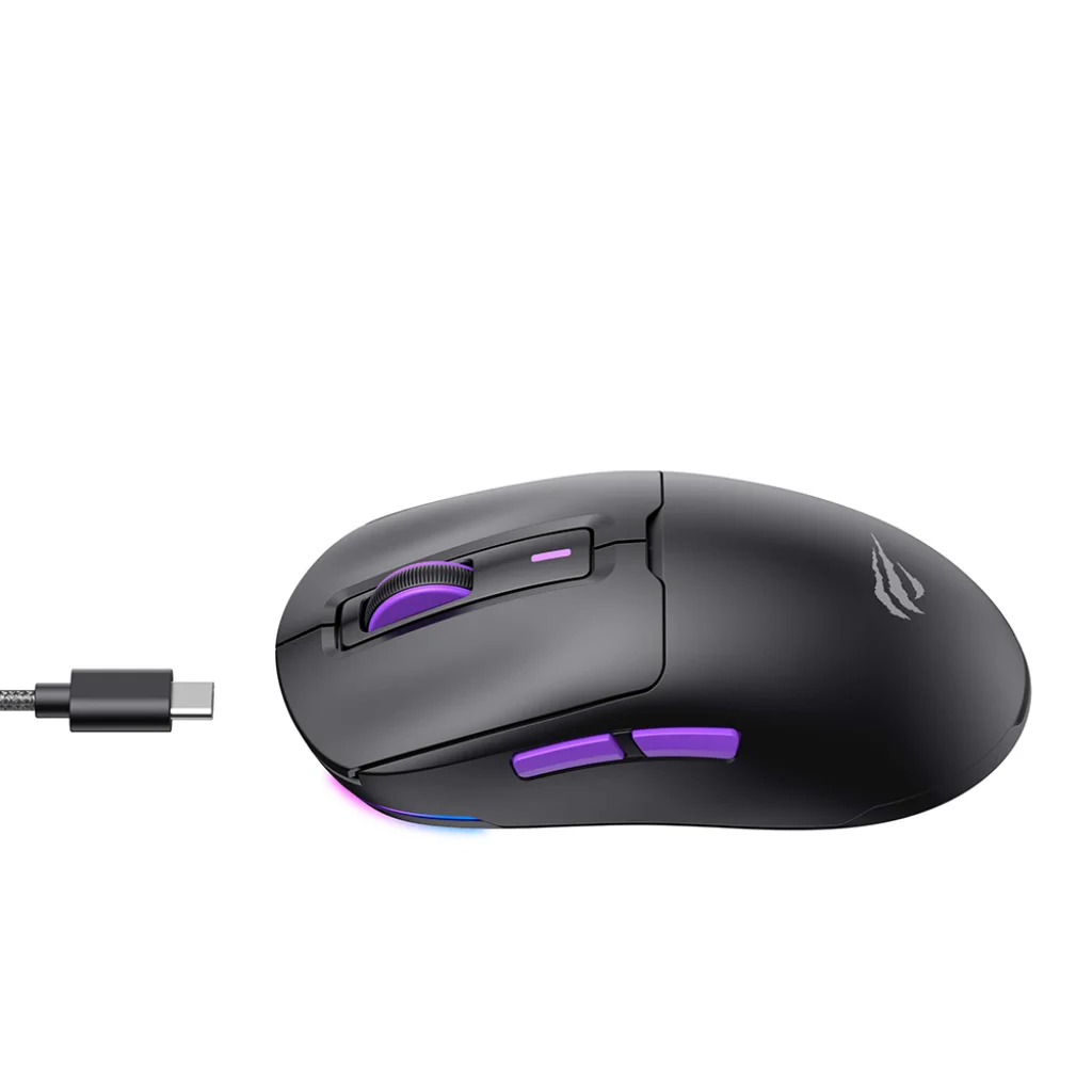 A Havit MS969WB nem csak teljesítményével, hanem megjelenésével is kiemelkedik. Az egér dinamikus LED világítással rendelkezik, amely fokozza a játékélményt és egyedi hangulatot teremt az asztalon. A fekete alapszín és a lila gombok tökéletes harmóniát alkotnak, modern és stílusos megjelenést kölcsönözve az eszköznek.