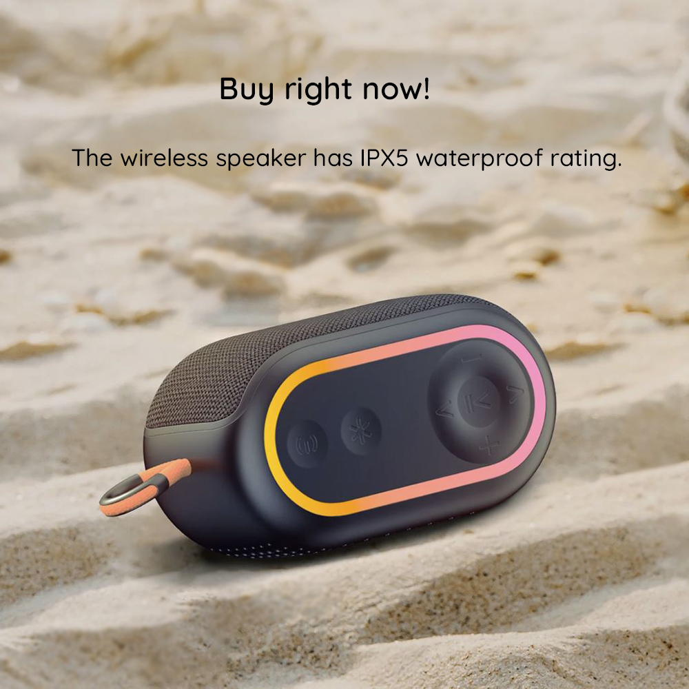 - IPX5 vízállóság: Fröccsenő víznek ellenálló kialakítás, ideális kültéri használatra, legyen szó strandról, medencéről vagy kirándulásról.