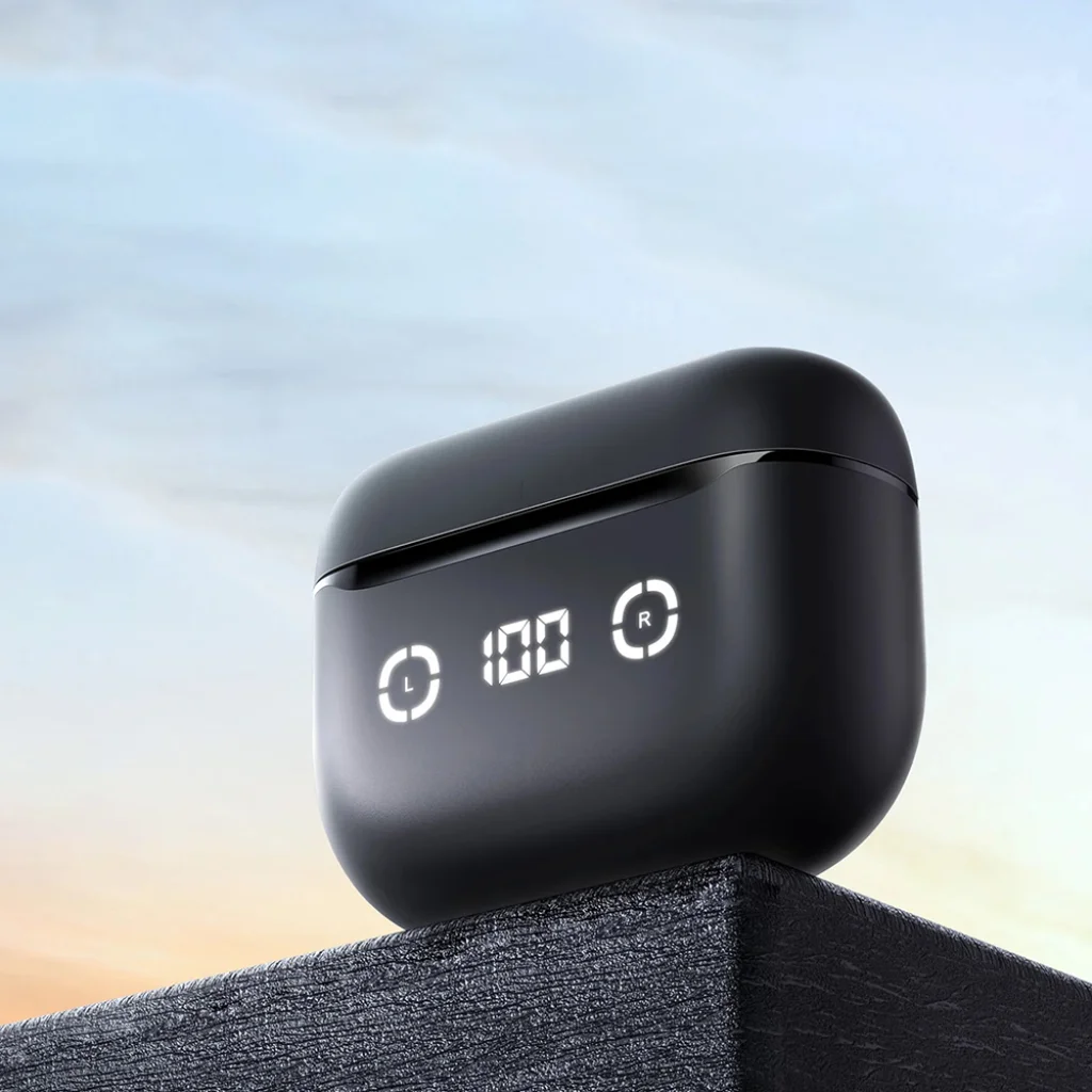 A töltőtok elején található elegáns digitális kijelző azonnal tájékoztatja Önt a tok aktuális töltöttségi szintjéről (százalékban), valamint a bal (L) és jobb (R) fülhallgató egyedi akkumulátor állapotáról. Így mindig tudni fogja, mikor van szükség töltésre, és sosem marad le a zenéről.