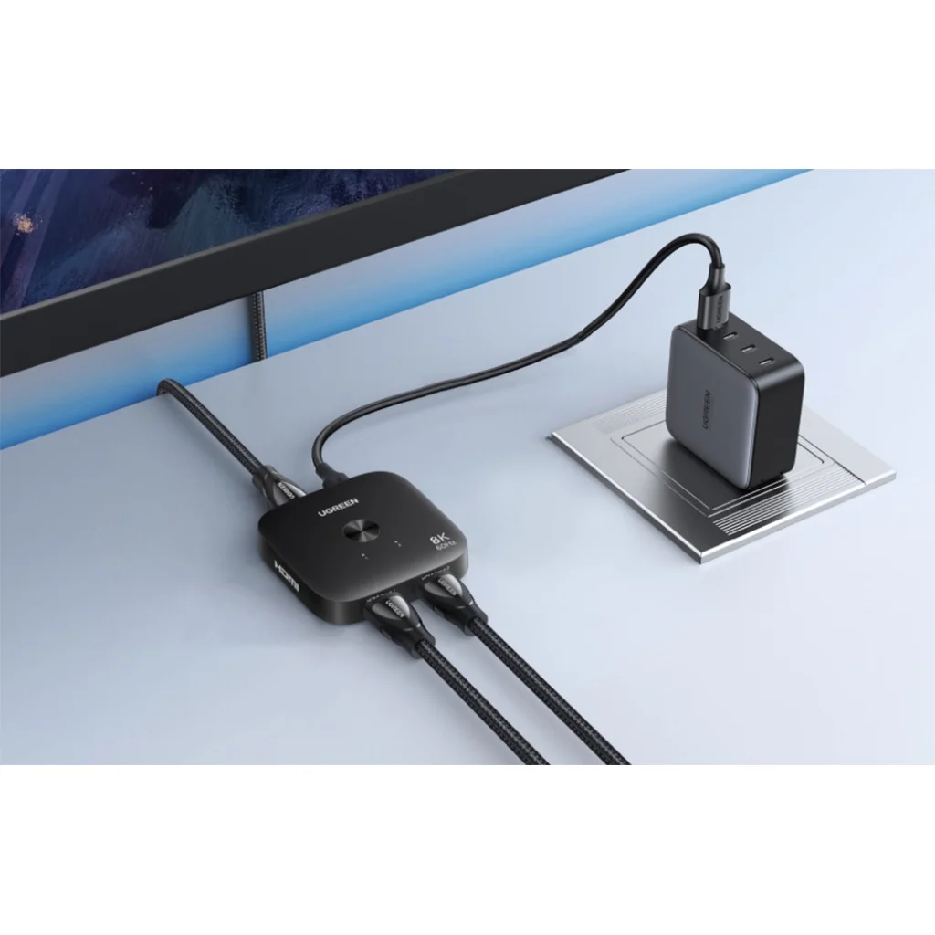 Az Ugreen AW700 egy kompakt és kényelmes HDMI kapcsoló, amely lehetővé teszi a gyors és zökkenőmentes váltást két forráseszköz között. Támogatja a legmagasabb képszabványokat (akár 8K 60 Hz-en), így otthoni és irodai használatra egyaránt alkalmas. Könnyen használható és számos eszközzel kompatibilis, stabil kapcsolatot biztosít jelveszteség nélkül.