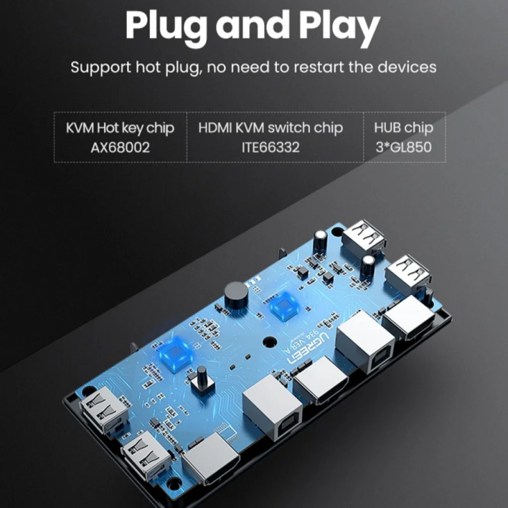 A két rendszer kezelése egyszerűbbé válik az Ugreen KVM kapcsolóval, mely gyors váltásra és megszakítás nélküli használatra lett tervezve. Rendelje meg most!