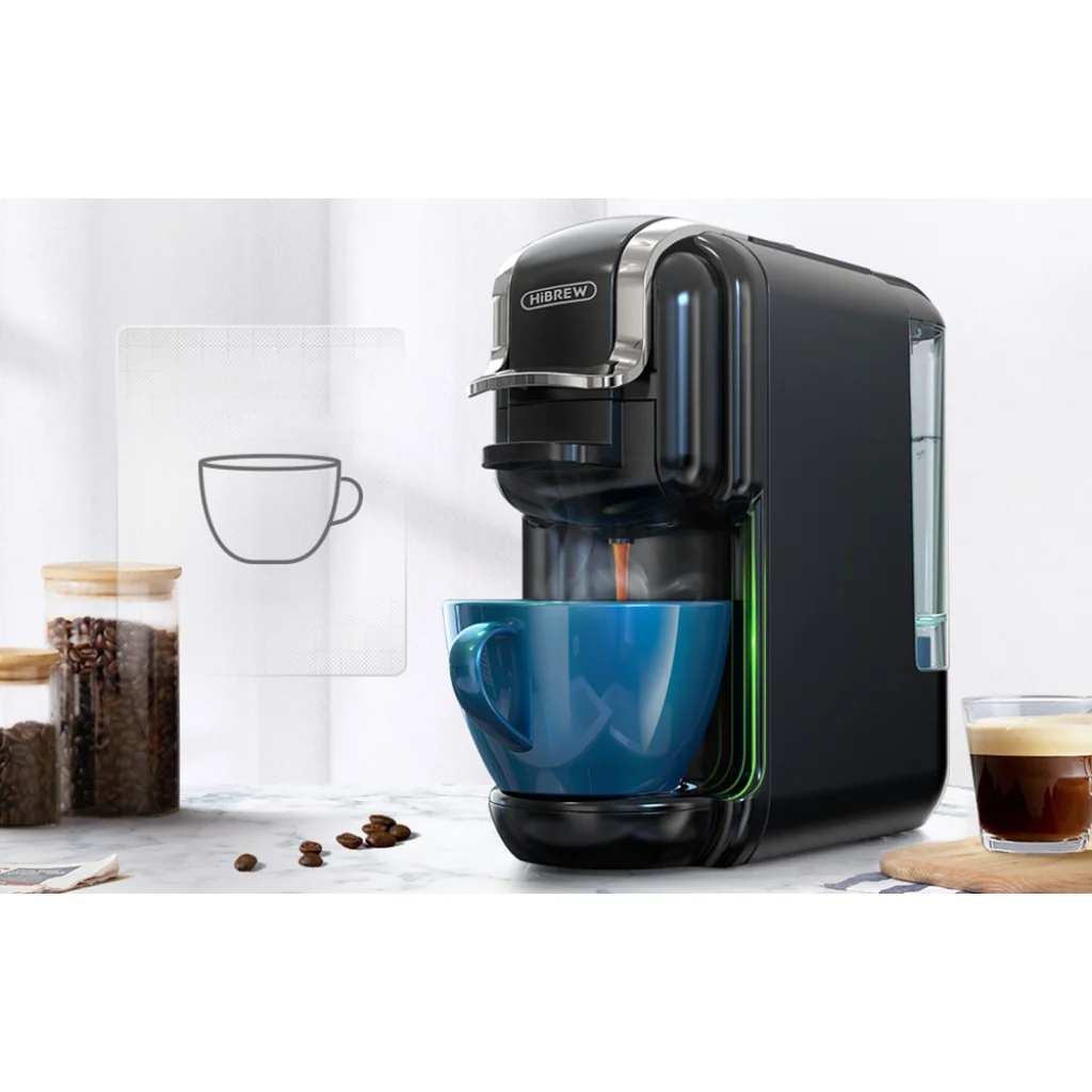 A HiBREW kávéfőző kompatibilis a Nespresso, Dolce Gusto, Kcup kapszulákkal és E.S.E. tasakokkal. Emellett őrölt kávé főzésére is alkalmas. Az ital intenzitását 7 szinten állíthatja be egy gombnyomással. Továbbá, akár 350 ml-es kapacitású kávét is készíthet.