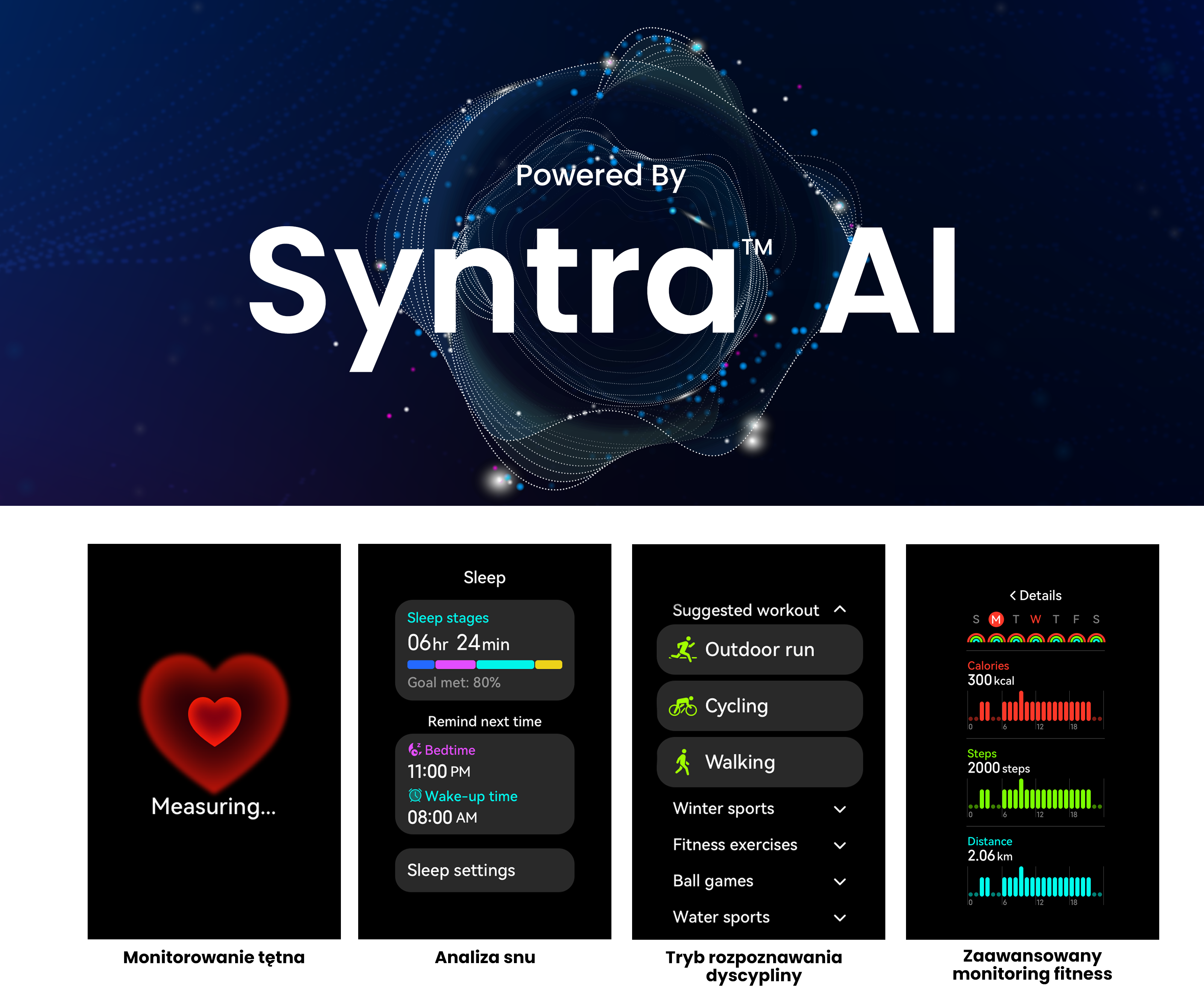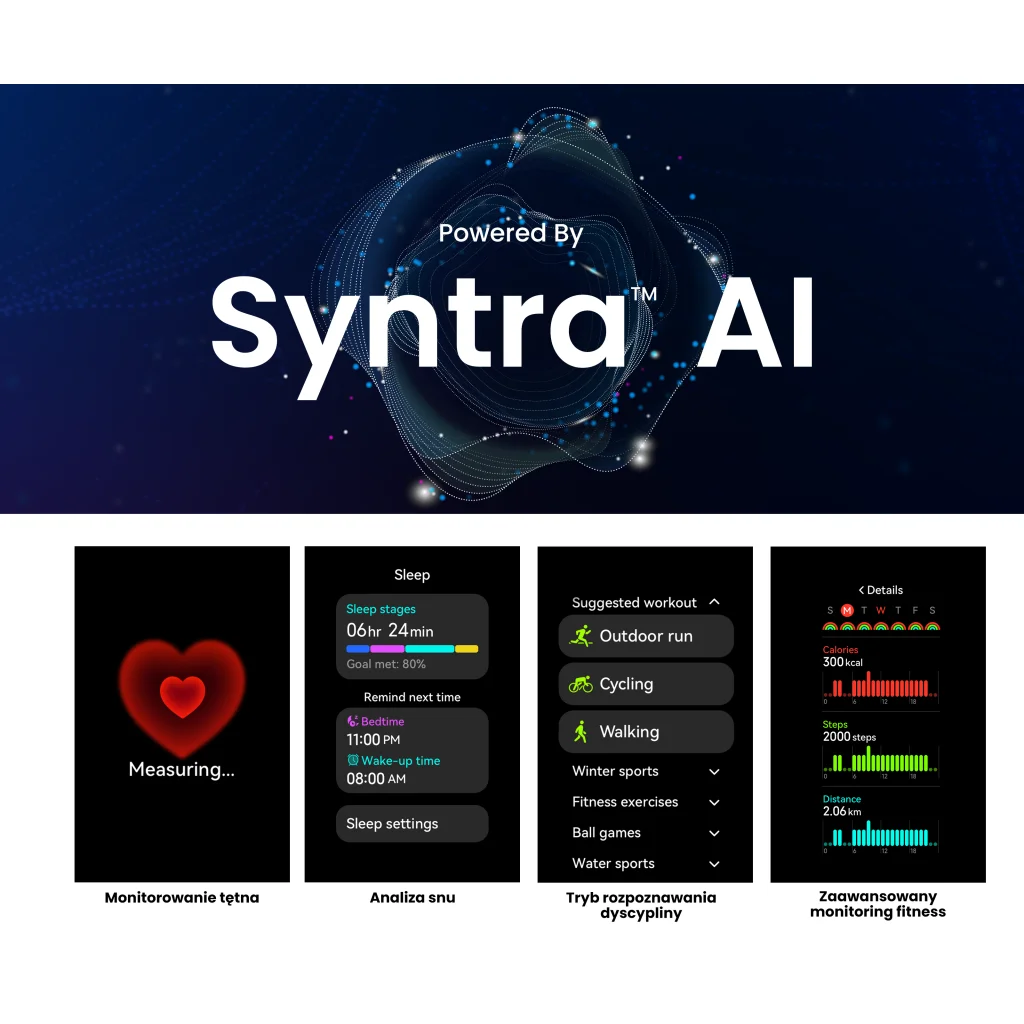 Az AURORA okosóra az elegancia és a modernitás ötvözete, lenyűgözve karcsú, minimalista dizájnnal és látványos körkijelzővel. Egyszerűséget és eleganciát ötvöző kialakítása egyedi, prémium érzetet ad a készüléknek. Az impozáns 1,43 hüvelykes AMOLED kijelzőnek köszönhetően minden részlet élénk színekben elevenedik meg, páratlan képminőséget biztosítva. A felhasználói kényelem új dimenziót ölt, és a képernyő minden helyzetben éles, tiszta képet nyújt. Fedezd fel az okos technológia jövőjét a Syntra™ AI-val, amely minden interakciót egyszerűsít és hihetetlen könnyedséggel optimalizálja a mindennapi feladatokat. Az AURORA okosórád okosabbá válik, mint valaha, és azonnal alkalmazkodik az igényeidhez. Az AURORA lehetővé teszi, hogy vezeték nélkül maradj kapcsolatban, miközben fokozza a stílusodat. Könnyen hozzáférhetsz a híváselőzményekhez, és a beépített billentyűzet segítségével gyorsan kezdeményezhetsz és fogadhatsz hívásokat közvetlenül a csuklódról, még akkor is, ha a telefonod nincs kéznél. Egyetlen érintéssel válaszolj a fontos hívásokra, anélkül hogy lemaradnál arról, ami igazán számít. Az AURORA az ideális edzőtársad, több mint 170 sportmóddal, amelyek segítségével nyomon követheted a kulcsfontosságú mutatókat, mint például a pulzus, az elégetett kalóriák és a teljesítménycélok. Bármilyen sportot választasz, ez az okosóra segít új fitneszcélokat elérni, értékes betekintést nyújtva, amely motivál, hogy még jobb eredményeket érj el. Úgy tervezték, hogy minden vízi kihívásnak ellenálljon, ez az okosóra minden helyzetben kiválóan teljesít. Az IP68 vízállóságnak köszönhetően nem kell aggódnod a medencében úszás vagy hegyi túrázás közbeni eső miatt. Tartósságának köszönhetően szabadon használhatod a készüléket minden körülmény között, függetlenül a tevékenységtől vagy az időjárástól. Fejezd ki egyedi stílusodat egy széles színválasztékban elérhető okosórával, amely tükrözi hangulatodat. Legyen szó klasszikus barnáról, merész sötétzöldről, elegáns kékről vagy sokoldalú világosszürkeről, minden alkalomra találsz tökéletes opciót.