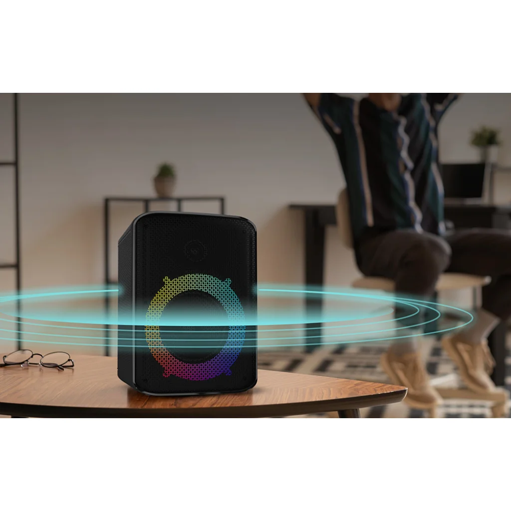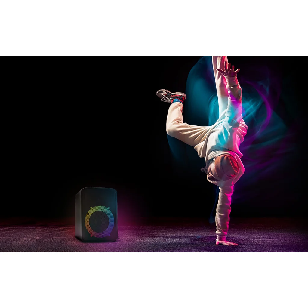 Teremts lenyűgöző hangulatot. A HiFuture EVENT hangszóró RGB háttérvilágítást kínál, hogy bármilyen bulit izgalmas módon indítson el. Kombináld kedvenc dalaid hangzását egy fényshow-val és bulizz úgy, mint még soha!