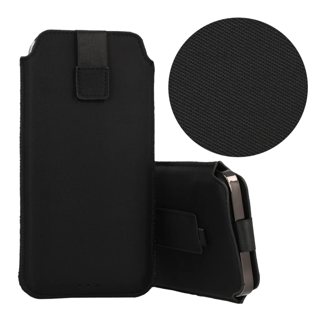 A telefont a tok tetejéről lehet behelyezni, és a Velcro záródás megakadályozza, hogy kiesjen. A tok belsejében található PULL-UP pánt segítségével gyorsan és egyszerűen kihúzhatja a telefont. A csaton található dombornyomott logó elegáns megjelenést kölcsönöz.