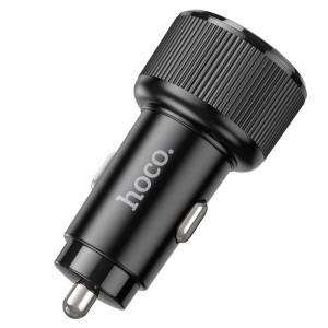 Hoco NZ14B autós töltő gyors töltési funkcióval és dupla kimenettel. Lehetővé teszi a mobil eszközök azonnali töltését az autóban. LED világítással rendelkezik. A töltő kettős USB-C kimenettel van felszerelve (összesen 50 W teljesítménnyel), amely lehetővé teszi 2 eszköz egyidejű töltését. A termék támogatja a PD 30W gyors töltést, QC 3.0, FCP, AFC és más gyors töltési megoldásokat. Alumínium ötvözetből és PC-ből készült, a töltő rendkívül tartós és ellenálló a sérülésekkel szemben. Az intelligens felismerés lehetővé teszi, hogy az áramot a megfelelő eszközhöz igazítsa, ezzel biztosítva a biztonságos használatot. Specifikáció: Portok: 2x USB-C Áram: 5 V / 3 A Teljesítmény: 50 W - USB-C1: 30 W (PD/QC/FCP/AFC); - USB-C2: 20 W (PD/QC/FCP/AFC); - USB-C1 + USB-C2: 30 W + 20 W = 50 W Anyag: alumínium ötvözet + lángálló PC Kábel: nincs Méret: 64 × 31 mm Súly: 25 g Gyors töltési technológia támogatás: PD, QC 3.0, FCP, AFC