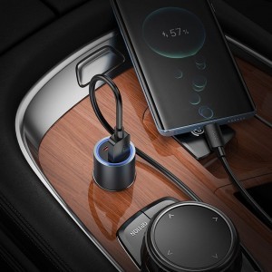 A Hoco Z60 autós töltő gyors töltési funkcióval, dupla kimenettel: USB-C, USB-A. Lehetővé teszi a mobil eszközök gyors töltését az autóban. A töltő dupla USB-C (30 W) és USB-A (18 W) kimenettel van felszerelve, lehetővé téve két eszköz egyidejű töltését. A termék támogatja a PD, QC3.0, FCP, AFC gyors töltést és más gyors töltési megoldásokat. Alumínium ötvözetből és PC-ből készült, a töltő rendkívül tartós és ellenáll a sérüléseknek. Az intelligens felismerés lehetővé teszi az áram megfelelő illesztését az adott eszközhöz, biztosítva a biztonságos használatot. Specifikáció:
