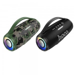 Hoco HA4 Mini hordozható vezeték nélküli hangszóró. Lehetővé teszi okostelefonok és bármely Bluetooth technológiával felszerelt audioeszköz csatlakoztatását. Az RGB LED világítás a lejátszott zene ütemére pulzál. Hallgass zenét bárhol is vagy! Mindössze egy hordozható hangszóróra és bármilyen Bluetooth technológiájú audioeszközre van szükséged. A tágas akkumulátor (3000 mAh) több órán át tartó zenelejátszást tesz lehetővé. A kompakt méret megkönnyíti a hangszóró szállítását. A hangszórón beépített fogantyú van a könnyű hordozhatóság érdekében. Az RGB LED világítás a lejátszott zene ütemére pulzál. Műszaki adatok: