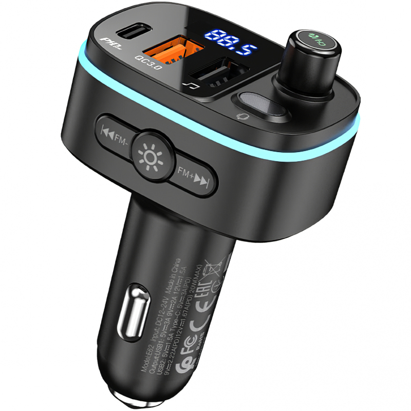 Az HOCO E62 nem csak funkcionális, de elegáns és biztonságos is. A beépített LED kijelző folyamatosan mutatja az aktuális FM frekvenciát, az autó akkumulátorának feszültségét és az üzemállapotot, így mindig informált marad. A készüléket körbeölelő többszínű, változtatható környezeti világítás (kék, zöld, piros és egyéb árnyalatokban pompázva) modern és stílusos hangulatot teremt az autó belsejében, amit az Ön ízlésének megfelelően állíthat. Lángálló PC + ABS anyagokból készült, és fejlett védelmi rendszerekkel van ellátva, amelyek megakadályozzák a túláramot, túlmelegedést és rövidzárlatokat, így garantálva a biztonságos és tartós használatot minden utazás során.