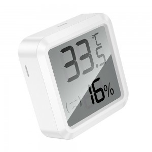 Termék leírás 1. Anyag: ABS 2. Méret: 45 45 13mm; Súly: 24g 3. Kijelző: LCD kijelző 4. Elem: 200mAh/CR2032 5. Kijelzés: Beltéri páratartalom és hőmérséklet ugyanazon a képernyőn jelenik meg, 30 másodpercenként frissül