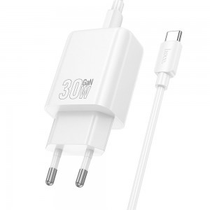A Hoco N62 fali töltő USB-C porttal és 30W-os gyorstöltési támogatással rendelkezik. A készlet tartalmaz egy 60 W-os USB-C - USB-C kábelt, amely 1 méter hosszú. A töltő támogatja a PD 30W gyorstöltési protokollt, QC3.0, FCP, AFC - lehetővé teszi okostelefonok gyors töltését. A 30W teljesítmény sokkal gyorsabb energiaátvitelt tesz lehetővé rövidebb idő alatt, ami azt jelenti, hogy kevesebb idő szükséges a készülék teljes feltöltéséhez. A töltő USB-C porttal rendelkezik. Magas minőségű, tűzálló anyagokból készült. Alkalmas szabványos EU csatlakozókhoz. A töltő mellé egy 60 W-os USB-C - USB-C kábel is jár, amely 1 méter hosszú.