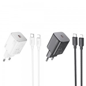 A Hoco N40 hálózati töltő egy USB-C porttal és 20 W gyors töltés támogatással rendelkezik. Tartalmaz egy 1 méteres USB-C - Lightning kábelt. A töltő támogatja a PD 20 W, QC3.0, FCP, AFC gyors töltési protokollokat, amelyek lehetővé teszik a telefon valóban gyors töltését. A 20 W teljesítmény lehetővé teszi az energia sokkal gyorsabb átvitelét rövidebb idő alatt, ami azt jelenti, hogy az eszköz teljes töltése sokkal kevesebb időt vesz igénybe. A töltő USB-C porttal rendelkezik. Kiváló minőségű tűzálló anyagokból készült. Alkalmas szabványos EU dugókhoz. A töltőhöz egy 1 méteres USB-C - Lightning kábel tartozik.