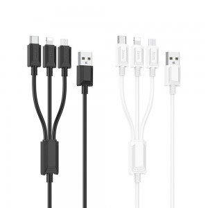 3 az 1-ben Hoco X74 töltőkábel USB-A - Lightning / Micro USB / USB-C csatlakozókkal. Három végződéssel felszerelve: Lightning, Micro USB, USB-C, lehetővé teszi mindhárom egyidejű használatát, így töltést biztosít. lehetővé teszi különböző bemenettel rendelkező eszközök töltését anélkül, hogy több dedikált kábelt kellene vásárolni. Galvanizált konstrukció biztosítja a megfelelő rugalmasságot. Optimális hosszúság (1 m) garantálja a kényelmet és komfortos használatot. Specifikáció: