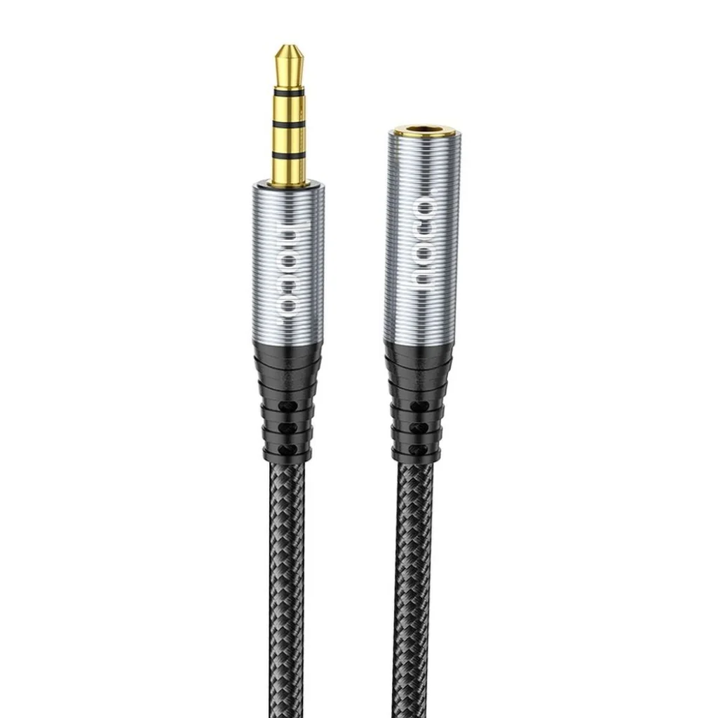 Modern HOCO UPA20 audio kábel 3,5 mm Mini Jack férfi és női csatlakozókkal. Ideális megoldás fejhallgatók hosszabbításához. Magas minőségű AUX hosszabbító kábel. Tökéletes a fejhallgató 2 méteres meghosszabbításához. Ennek köszönhetően kényelmesen hallgathat zenét, miközben a lejátszó eszköze, mint például egy okostelefon, tablet vagy számítógép távolabb van Öntől. A kábel kiváló minőségű anyagokból készült, ami ellenállóvá teszi kisebb mechanikai sérülésekkel, szakításokkal szemben. Specifikáció: Kábel hossza: 2 m Csatlakozók: 3.5mm Mini Jack (apa) - 3.5 mm Mini Jack (anya) Anyag: TPE + nejlon fonat