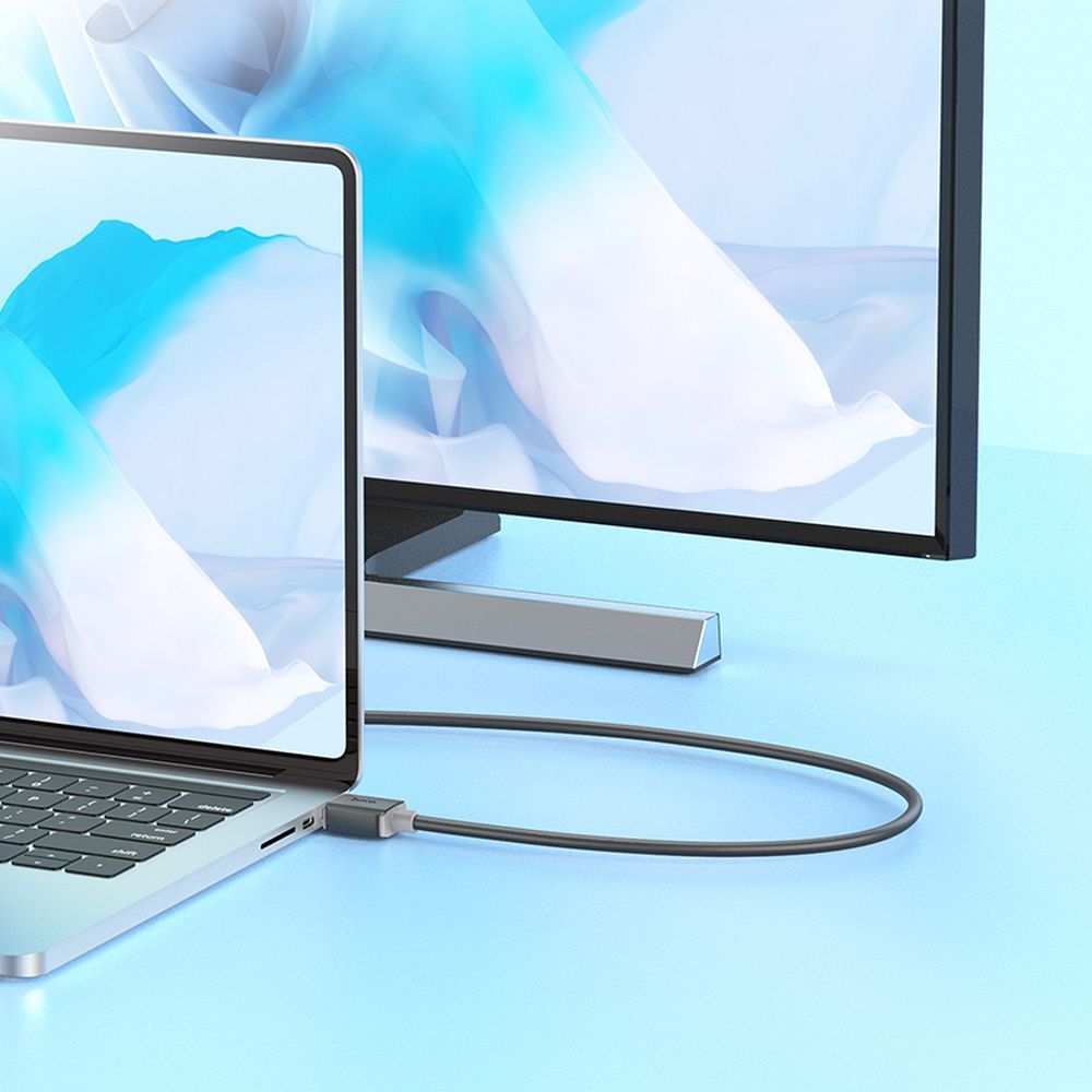 A HOCO US08 kiváló minőségű HDMI - HDMI kábel, amely megfelel a 2.0 verziónak, és lehetővé teszi a képek átvitelét 4K felbontásban 60Hz-en. Az előrehaladott technológiának és a 18 Gbps sávszélességnek köszönhetően biztosítja a zavartalan, folyamatos jelátvitelt, így ideális választás TV-k, monitorok, játékkonzolok, laptopok és más eszközök csatlakoztatásához. A kábel tartós PVC-ből készült, amely biztosítja annak rugalmasságát és ellenállását a károsodással szemben. A tiszta rézmag (30AWG) garantálja a stabil kapcsolatot és a kiváló minőségű adatátvitelt jelveszteség nélkül. Az 1 méteres hosszúság kényelmes használatot tesz lehetővé, biztosítva a rugalmasságot az eszközök elhelyezésében. A HOCO US08 támogatja a valós idejű audio- és videószinkronizálást, így kiváló választás filmnézéshez, konzoljátékokhoz vagy nagy képernyős munkákhoz. A 4K 60Hz támogatás tiszta, részletgazdag képet biztosít magas kontraszttal és élénk színekkel. Specifikáció: