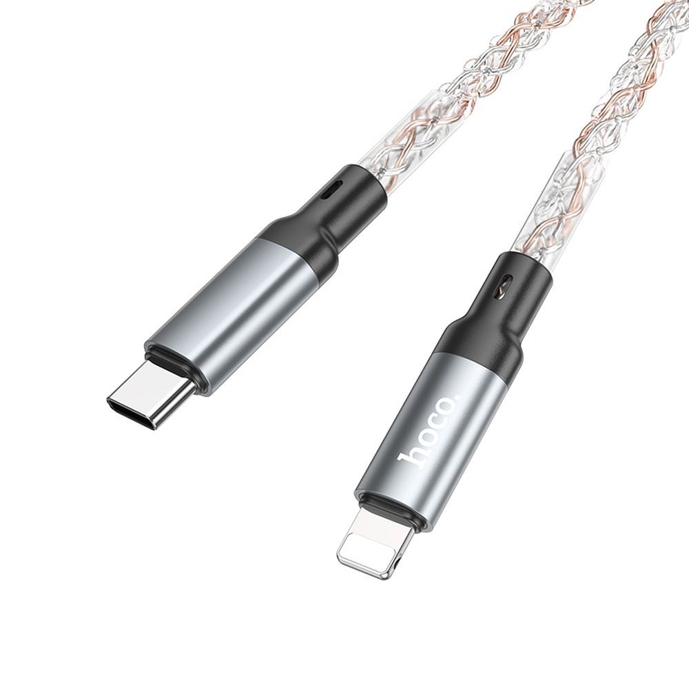 Hoco U112 kábel USB-C - Lightning csatlakozóval. Támogatja a 20 W-os Power Delivery gyors töltést és az adatátvitelt. A sokoldalú kábel lehetővé teszi mind az eszközök töltését, mind a szabad adatátvitelt. Az 1 m hosszú kábel garantálja a sérülésekkel és törésekkel szembeni ellenállását, így a kiegészítő hosszú ideig szolgálja a felhasználót. Specifikáció: