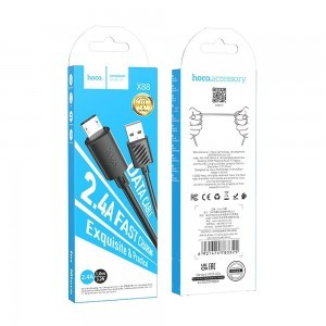 A Hoco Gratifed X88 kábel USB-A – Micro USB csatlakozóval. Támogatja a töltést és az adatátvitelt. Erős PVC fonat és megerősített szerkezet jellemzi. A sokoldalú kábel lehetővé teszi az eszköz töltését és az adatmentést. Az 1 m hosszú kábel és az erős PVC fonat garantálja a sérülésekkel szembeni ellenállást, így a kiegészítőt hosszú ideig lehet használni. Specifikáció: Hossz: 1 m Csatlakozó: USB-A – Micro USB Áramerősség: 2,4A Átviteli sebesség: akár 480 Mb/s Anyag: PVC Súly: 24 g