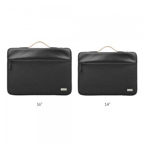 A Hoco GT7 táska egy 14" méretű laptop számára készült stílusos és funkcionális táska, amely kiváló védelmet nyújt a készülék számára. Kiváló minőségű anyagokból készült, ötvözi a modern designt és a megbízható védelmet. A táska olyan felhasználók számára lett tervezve, akik értékelik a kényelmet és a funkcionalitást. Az ötszörös jacquard szövéssel és mikro-perforált bőrrel készült, tartós és esztétikus. A magas minőségű anyagok használata hosszú távú tartósságot és elegáns megjelenést biztosít a táskának. A táska belső része sűrű, kristálypolár béléssel és esésvédő pántokkal van ellátva, amelyek biztosítják a készülék biztonságát. A táska egy további tágas zsebet is kínál a kisebb kiegészítők számára, növelve ezáltal a funkcionalitását. Az elülső zseb ideális dokumentumok vagy egyéb apró tárgyak tárolására. A kényelmes narancssárga fogantyú kényelmet biztosít a hordozás során, és egy egyedi logótábla, amely a termékre utal, eleganciát ad, és megkülönbözteti a táskát a többi kiegészítőtől. Tökéletes laptopok és táblagépek szállítására, amelyek képernyőmérete legfeljebb 14", kombinálva a stílust és a funkcionalitást.