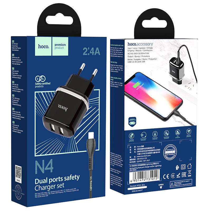 Termék leírás Hálózati töltő adapter 2x USB aljzattal Tartozék 1m Lightning kábellel USB1 Áramerősség és feszültség: 5V / 2.4A USB2 Áramerősség és feszültség : 5V / 2.4A Több lépcsős intelligens védelemmel ellátva