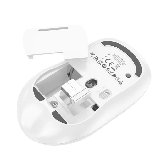 A HOCO GM25 vezeték nélküli optikai egér 4 gombbal és egy görgővel van felszerelve. Az egér szenzora változtatható érzékenységgel rendelkezik: 800-1200-1600 dpi. Otthoni és irodai használatra készült. Kényelmes, vezeték nélküli egér, amely lehetővé teszi a kényelmes használatot kábelkorlátozások nélkül. Kompatibilis a Windows 98/ME/2000/XP/Vista/8/10/11 operációs rendszerekkel. Változtatható DPI 800-1200-1600 dpi tartományban. Kétcsatornás vezeték nélküli kapcsolódásnak köszönhetően: 2,4 GHz-es rádió és Bluetooth kapcsolat teszi lehetővé, hogy az egér csatlakozzon a legtöbb asztali számítógéphez, laptophoz, mobiltelefonhoz, tablethez és okos TV-hez. Műszaki adatok: