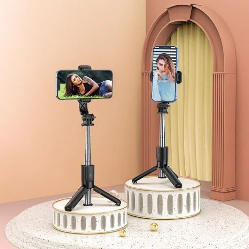 Szelfibot állvány funkcióval és vezeték nélküli távirányítóval. Tökéletes fényképezés rajongói számára. Segít megragadni az élet legfontosabb pillanatait. Kiváló minőségű rozsdamentes acélból és ABS-ből készült, hosszú távú és biztonságos használatot garantál. A kompakt méret és a könnyű, összecsukható kialakítás megkönnyíti a szelfibot szállítását és tárolását. Állítható hosszúság: a bot kihajtható, így egyéni igényeidhez igazíthatod hosszát. Ezenkívül három kihajtható lábbal rendelkezik, amelyek stabilitást biztosítanak és lehetővé teszik a távolról történő fényképezést. A hordozható távirányító lehetővé teszi, hogy a bot tartása nélkül készíts képeket. A termék Bluetooth technológiával csatlakozik az eszközhöz. Specifikáció: Anyag: rozsdamentes acél + ABS Méret: 152 33 50 mm (kihúzott magasság: 750 mm) Súly: 125 g Alkalmas: 4,5-7 hüvelykes mobiltelefonokhoz (fogási tartomány: 62-90 mm) Csatlakozás: Bluetooth 4.0