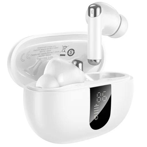 Ne válj meg kedvenc zenéidtől a TWS vezeték nélküli fülhallgatóknak köszönhetően, amelyek egy LED kijelzővel felszerelt töltőtokkal rendelkeznek a Hoco-tól. Aktív zajcsökkentéssel (ANC) és környezeti zajcsökkentéssel (ENC). A kézben tartható, kényelmes használatú TWS fülhallgatók jól illeszkednek a füledbe, így több órás használat után sem érzel kényelmetlenséget. Használd a Bluetooth kapcsolódást zene vagy audiokönyvek hallgatására, valamint beszélgetések lebonyolítására, amely a beépített mikrofonnak köszönhetően lehetséges. A hordozható töltőtok biztosítja, hogy a fülhallgatóid mindig feltöltve legyenek, és a kompakt kialakításnak köszönhetően bárhová magaddal viheted és biztonságosan tárolhatod őket. A fülhallgatók aktív zajcsökkentéssel (ANC) és környezeti zajcsökkentéssel (ENC) rendelkeznek, ami lehetővé teszi, hogy növeld a zenehallgatás vagy beszélgetés élvezetét zajos környezetben az egyhangú alacsony frekvenciájú hangok, mint például a motorzaj, ventilátorzaj, repülőgépzaj vagy ROM elnyomásával. Műszaki adatok: