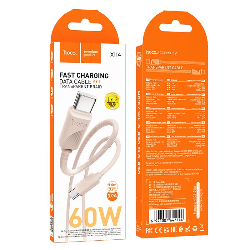 A Hoco X114 gyors töltőkábel USB-C - USB-C csatlakozóval, 1 méter hosszú. Lehetővé teszi a gyors töltést akár 60 W teljesítménnyel és adatátvitellel. Támogatja a Power Delivery és Quick Charge 3.0 protokollokat. Töltsd fel akár nagy készülékeidet is pillanatok alatt! A kábel kompatibilis a Power Delivery és Quick Charge 3.0 protokollokkal, és alkalmas sokféle, akár 60 W energiaigényű eszköz tápellátására. A gyors töltés lehetővé teszi, hogy rövid idő alatt teljesen feltöltsd okostelefonod (vagy más eszközöd) akkumulátorát. Elsődleges a biztonság: a kábelt csatlakoztatva a csatlakozók hőmérséklete állandó szinten marad, így nem kell aggódnod a túlmelegedés és az akkumulátor károsodása miatt - még akkor sem, ha töltés közben használod az eszközt. Az 1 méter hosszú kábel kényelmes használatot biztosít az okostelefon töltése közben. Specifikáció:
