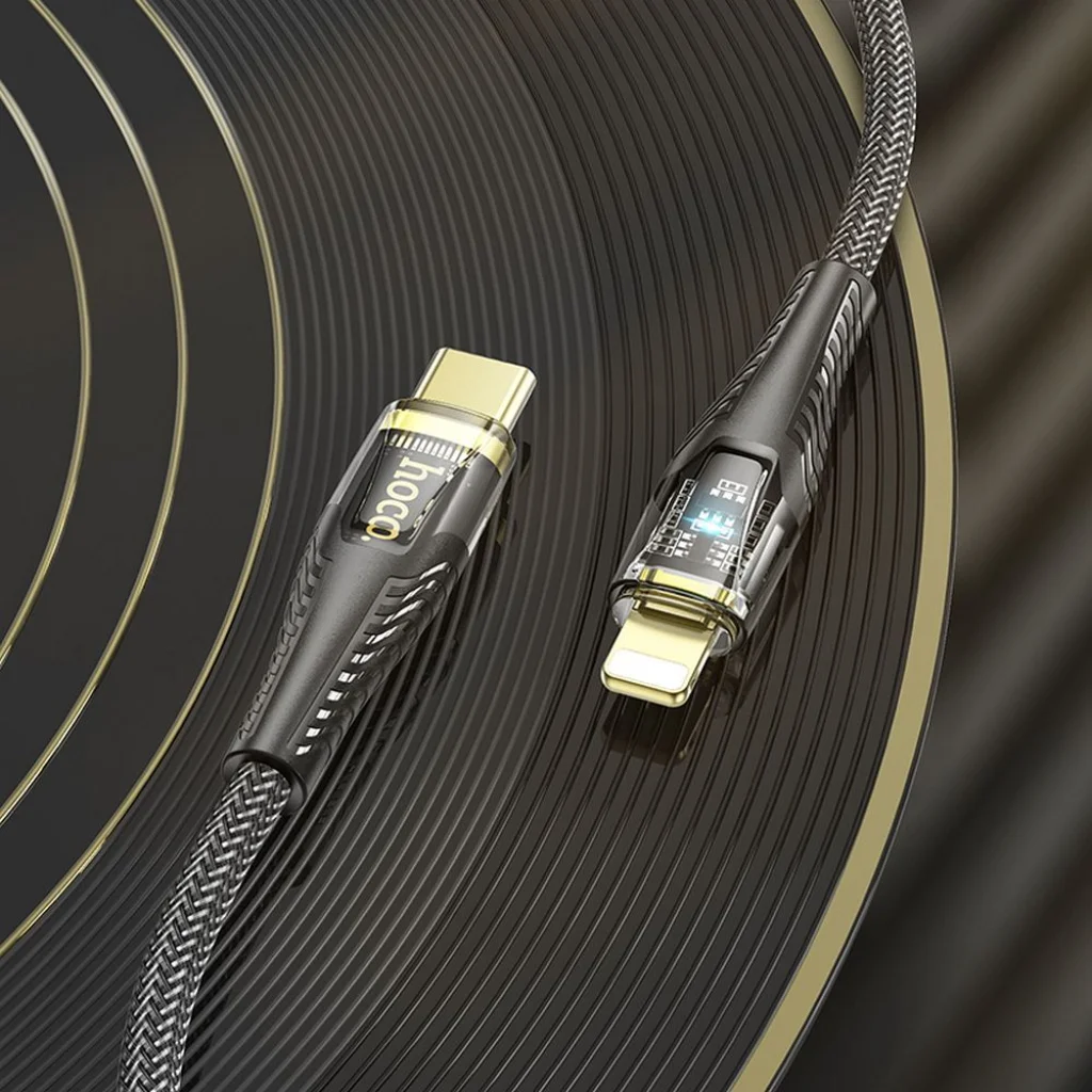 Hoco U121 gyorstöltő kábel USB-C - Lightning csatlakozóval, 1,2 méteres hosszúsággal. Lehetővé teszi a gyors töltést akár 27 W teljesítménnyel és az adatátvitelt. Támogatja a Power Delivery protokollt. Töltse fel még a nagyobb eszközöket is pillanatok alatt! A kábel kompatibilis a Power Delivery protokollal, és alkalmas sokféle eszköz táplálására, amelyek teljesítményigénye akár 27 W. A gyors töltés azt jelenti, hogy rövid idő alatt teljesen feltöltheti okostelefonja (vagy más eszköze) akkumulátorát. Első a biztonság: a kábel csatlakozóinak hőmérséklete állandó szinten van tartva, így nem kell aggódnia a túlmelegedés és az akkumulátor károsodása miatt, még akkor sem, ha a készüléket töltés közben használja. Az 1,2 méteres kábel kényelmes használatot biztosít az okostelefon töltése közben. Műszaki adatok: Hossz: 1,2 m Csatlakozó: USB-C - Lightning Teljesítmény: 27 W Áramerősség: 20 V / 3 A Adatátvitel: akár 480 Mb / s Anyag: fonott szál + PVC Súly: 35 g Gyorstöltési technológia támogatás: Power Delivery