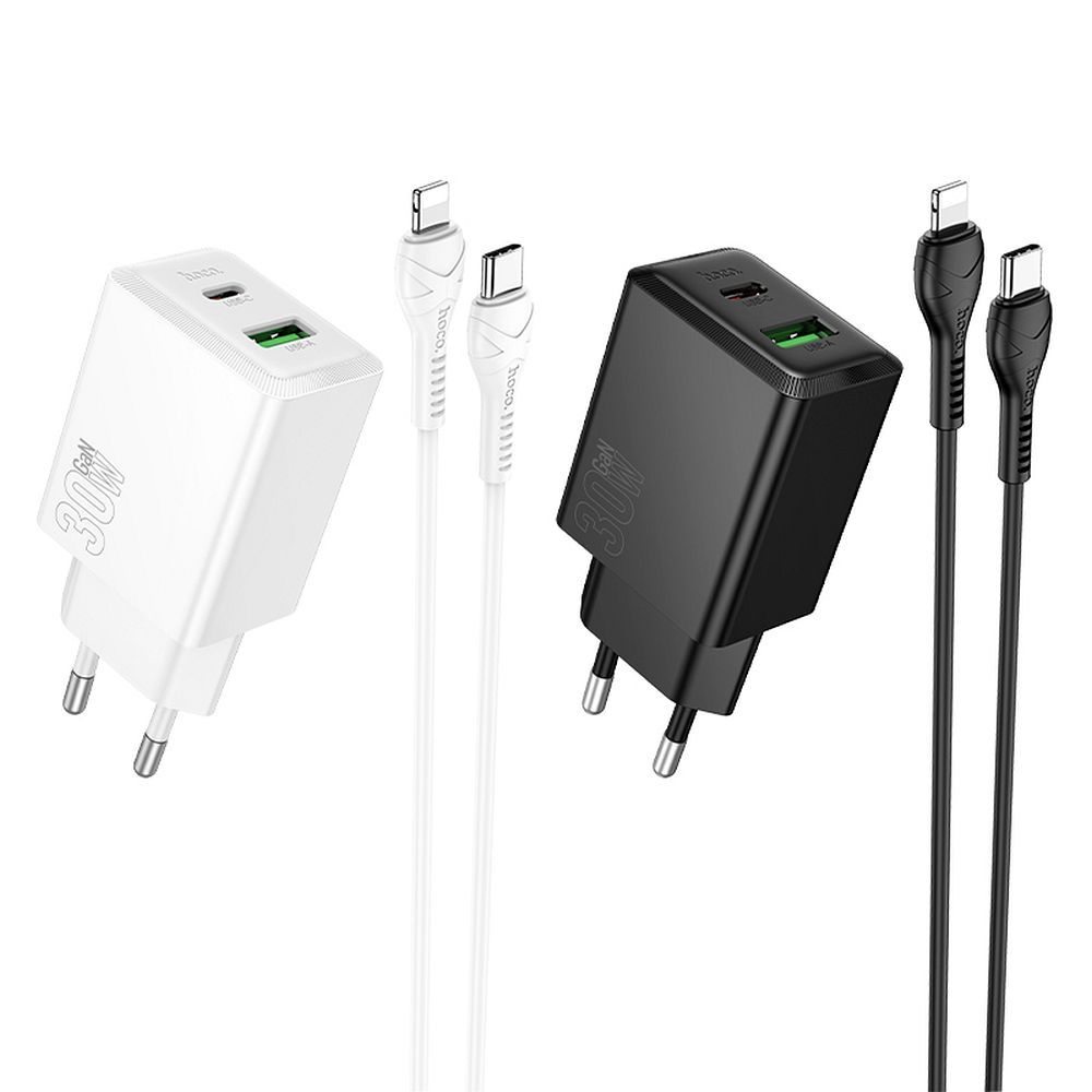 Hoco N71 hálózati töltő, gyors töltési funkcióval és kettős kimenettel. Lehetővé teszi a mobil eszközök gyors feltöltését. A csomag tartalmaz egy 1 méteres USB-C - USB-C kábelt. A töltő két kimenettel van felszerelve: USB-C (30 W) és USB-A (18 W), így két eszközt is tölthet egyszerre. A termék támogatja a gyors töltési megoldásokat, például a PD, QC 3.0, FCP, AFC és egyebek. A PC-ből készült töltő rendkívül tartós és ellenálló a sérülésekkel szemben. Az intelligens felismerés lehetővé teszi, hogy az áramot az adott eszközhöz igazítsa, biztonságos használatot biztosítva. A töltőhöz egy 60 W teljesítményű USB-C - USB-C kábel is tartozik, 1 méter hosszúságban. Specifikáció: