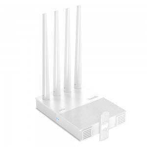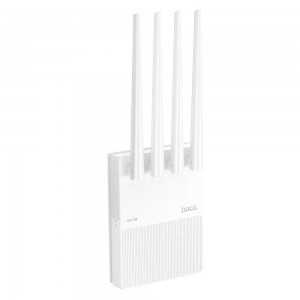 A HOCO HI31 egy modern vezeték nélküli router, amely megfelel a WiFi5 szabványnak (IEEE802.11b/g/n/ac), és gyors, stabil internetkapcsolatot biztosít, akár 1200 Mbps maximális átviteli sebességgel. Négy darab 5 dBi antenna segítségével a router széles hálózati lefedettséget kínál, így ideális megoldás otthonra és irodába egyaránt. Kivételes vezeték nélküli kapcsolat teljesítményt nyújt a két külön hálózat sugárzásával a 2,4 GHz-es és 5 GHz-es sávokban (DualBand). A router egy hatékony MT7628DA + MT7613B rendszerrel és 64 MB RAM-mal, valamint 16 MB Flash memóriával van felszerelve, amely megbízható és zavartalan működést biztosít még magasabb hálózati terhelés esetén is. Az eszközön van 1 RJ45 WAN port és 3 RJ45 LAN port 10/100 Mbps sebességgel, amely lehetővé teszi vezetékes eszközök egyszerű csatlakoztatását. A HOCO HI31 router elegáns, kompakt kialakításával tűnik ki. A menü 7 nyelven történő támogatásának köszönhetően a konfiguráció és a hálózatkezelés egyszerű és intuitív. Az eszköz függőlegesen és vízszintesen is elhelyezhető, valamint felfüggeszthető. Specifikáció: