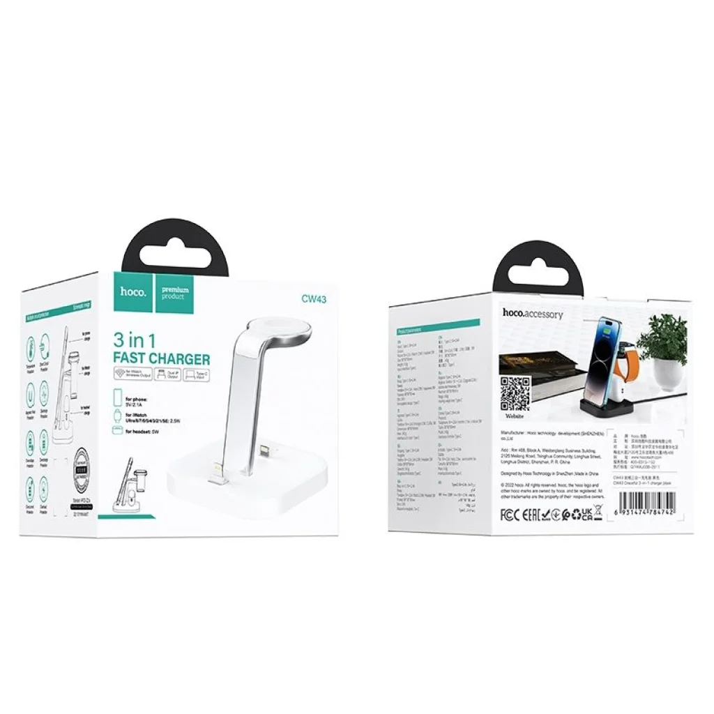 A Hoco Graceful CW43 3 az 1-ben indukciós töltő lehetővé teszi az iPhone, iPad, iWatch és AirPods töltését. Tölts több eszközt egy tartozékkal! A töltő lehetővé teszi több típusú készülék együttes induktív töltését: iPhone, iPad, iWatch és AirPods tölthetők vele. Az iPhone, iPad és AirPods töltése Lightning csatlakozón keresztül történik. A termék tartós ABS és PC anyagból készült, így ellenáll a sérüléseknek és kényelmes használatot biztosít. Kis méretének köszönhetően nem foglal sok helyet, ideális az irodába.