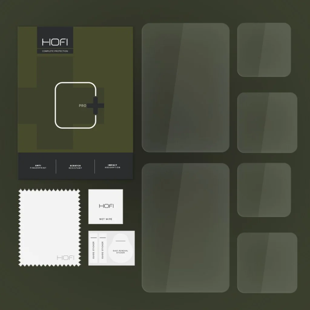 Kristálytiszta edzett üveg, amely kiválóan adja vissza a megjelenített színeket és nincs hatással az érintőképernyő érzékenységére. Könnyű és csiszolt üvegből készült, 0,26 mm vastag. Felületi keménysége (ellenállási szint) 9H, így rendkívül ellenáll a karcolásoknak még éles tárgyakkal való érintkezés esetén is (kés, kulcsok). Továbbá, oleofób bevonattal van ellátva, amely minimalizálja az ujjlenyomatok vagy más szennyeződések megjelenését. A Hofi Pro+ kiválóan védi az értékes kijelzőt extrém esések során is. A telepítés rendkívül egyszerű és minden felhasználó számára elérhető.