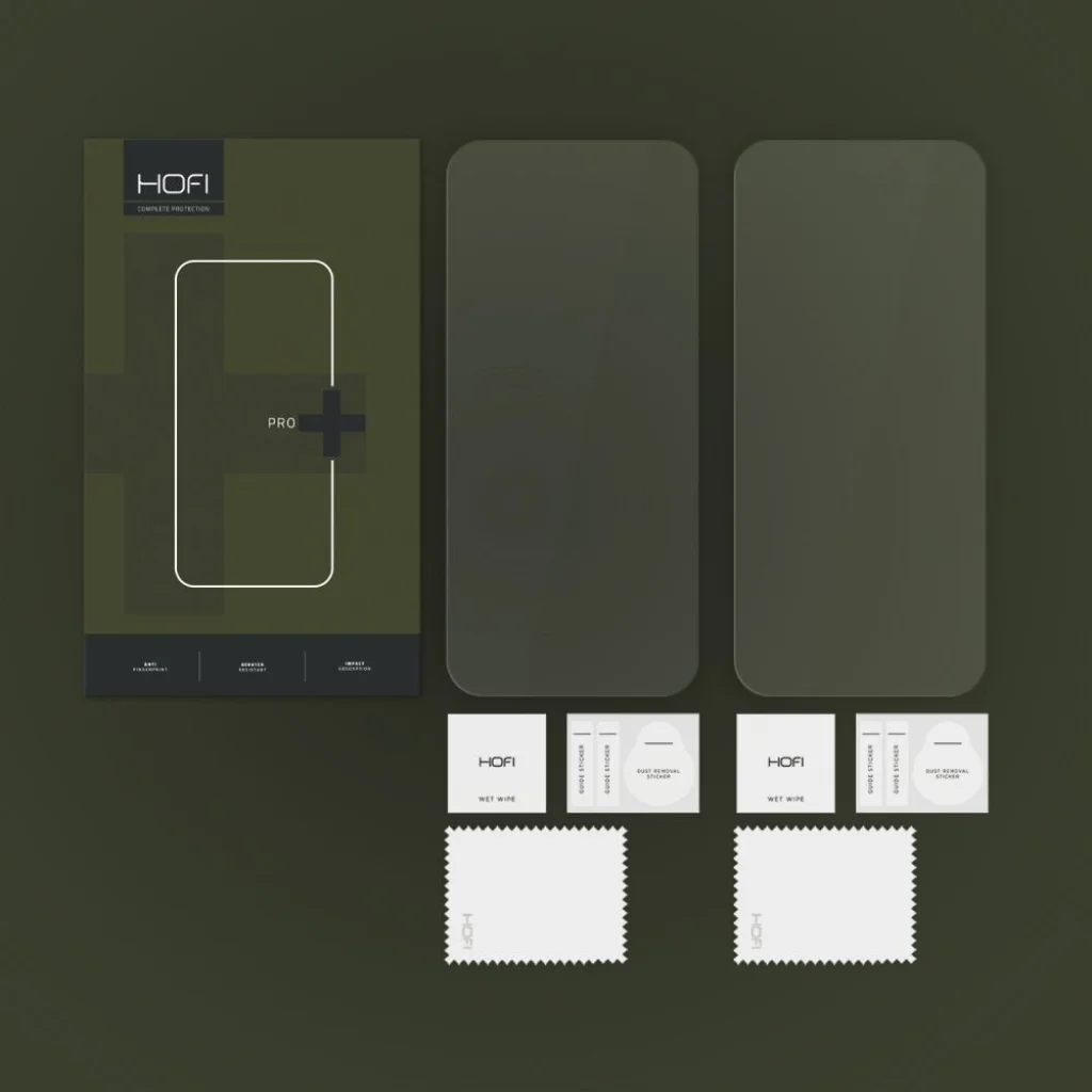A Hofi által gyártott edzett üveg könnyű és előre vágott, 0,3 mm vastagságú üvegből készül, amely nem befolyásolja az érintési érzékenységet. A gyártó szerint keménységi szintje a tízfokozatú skálán 9H. Ezáltal rendkívül karcálló.