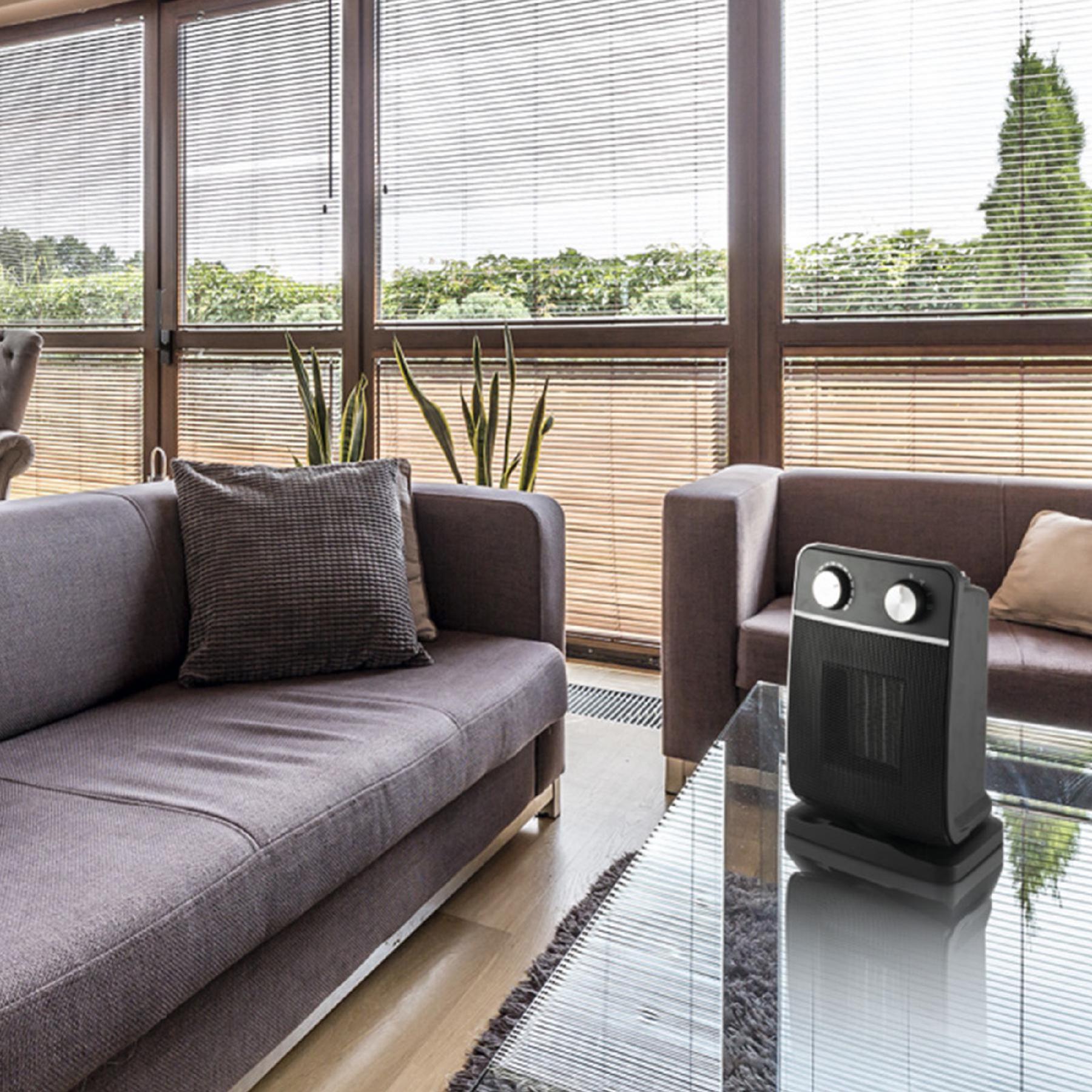 Az elegáns fekete készülék két fűtési fokozattal rendelkezik, 900 W és 1800 W teljesítménnyel, így a hőmérsékletet igényei szerint állíthatja be. Az álló elhelyezésű fűtőtest kompakt méretével (22 x 32 x 14,5 cm) és könnyű súlyával könnyedén elhelyezhető és áthelyezhető bármelyik helyiségben. A mechanikus termosztát lehetővé teszi a pontos hőmérséklet beállítását, míg a 70°-os oszcillálás biztosítja a meleg levegő egyenletes eloszlását a szobában.