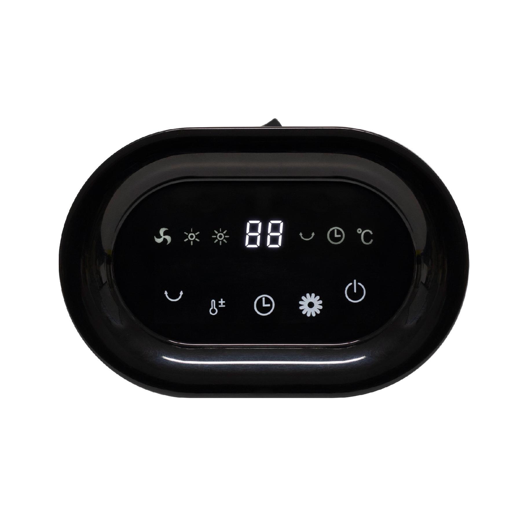 Két fűtési fokozattal rendelkezik (1000W és 1500W), melyek lehetővé teszik az energiatakarékos és hatékony fűtést. Az állítható hőmérséklet tartomány 15-45°C között mozog, így mindig a kívánt hőmérsékletet érheti el. A készülék digitális termosztáttal van ellátva, amelyet egy könnyen olvasható LED kijelzőn keresztül szabályozhat.
