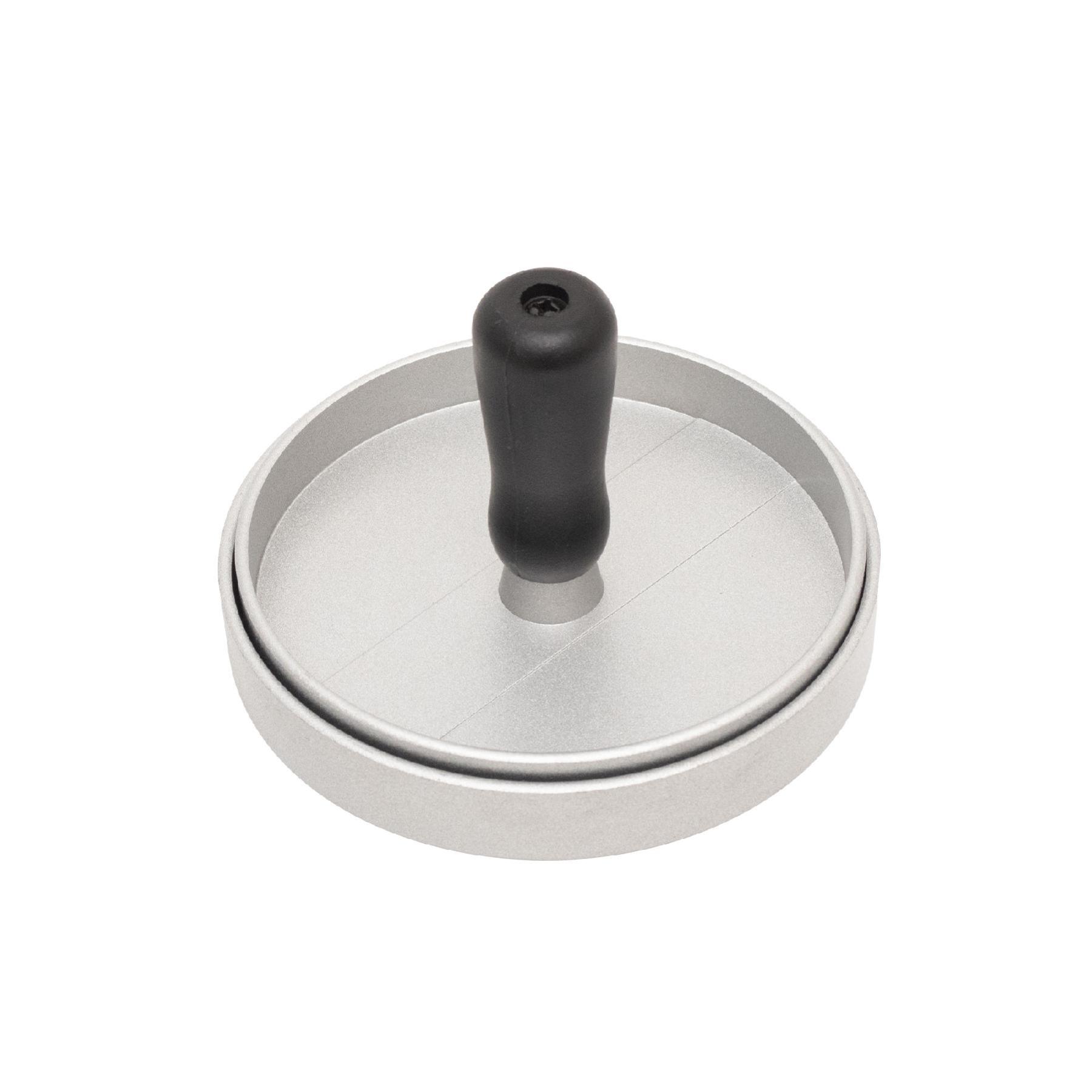 A hamburgerprés bordázott alumínium felülettel készült, amely nemcsak a klasszikus grillmintát nyomja bele a húsba, de egyenletes hőeloszlást is biztosít a sütés során. Ezáltal a pogácsák kívül ropogósak, belül szaftosak maradnak – pont úgy, ahogy a tökéletes hamburgerhez illik. A műanyag fogantyú ergonomikus kialakítása kényelmes fogást nyújt, miközben biztosítja a megfelelő nyomóerőt a húsmasszára.