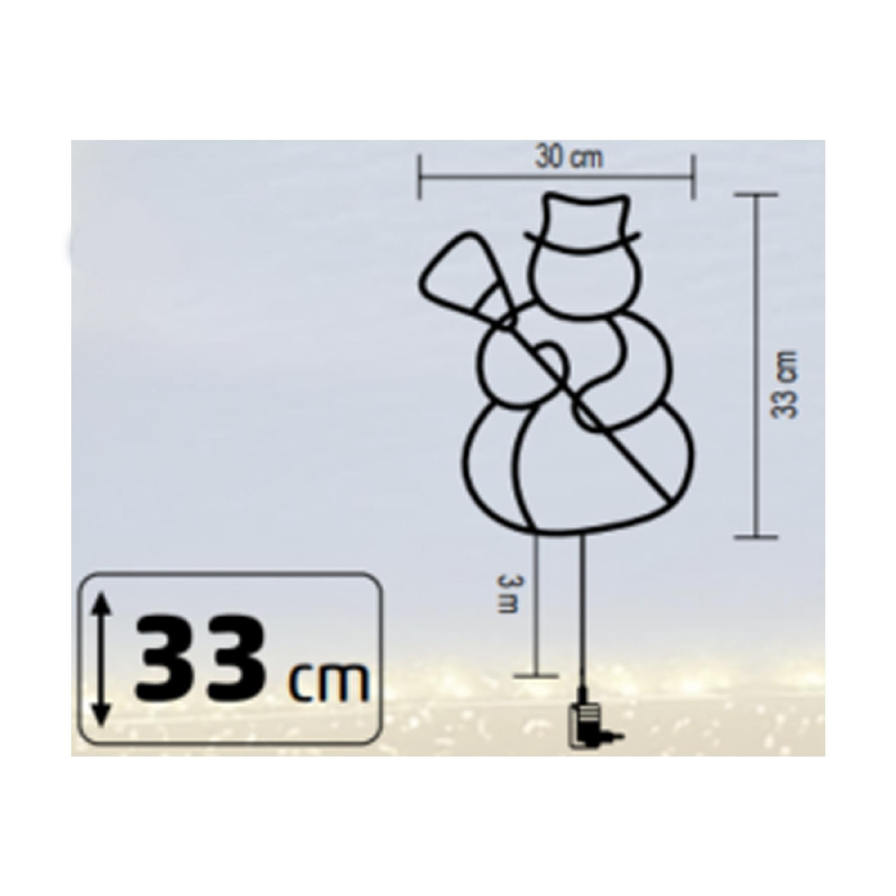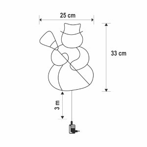 A dísz központi eleme egy mosolygós hóember forma, amelyet 35 darab melegfehér LED világít meg, kellemes és barátságos fényhangulatot teremtve. A fehér vezeték diszkréten simul a környezetébe, így a fények játsszák a főszerepet – nem a kábelek. A dísz kültéri és beltéri használatra egyaránt alkalmas, így nemcsak az otthon belső tereiben, hanem ablakra vagy teraszajtóra is tökéletesen elhelyezhető.
