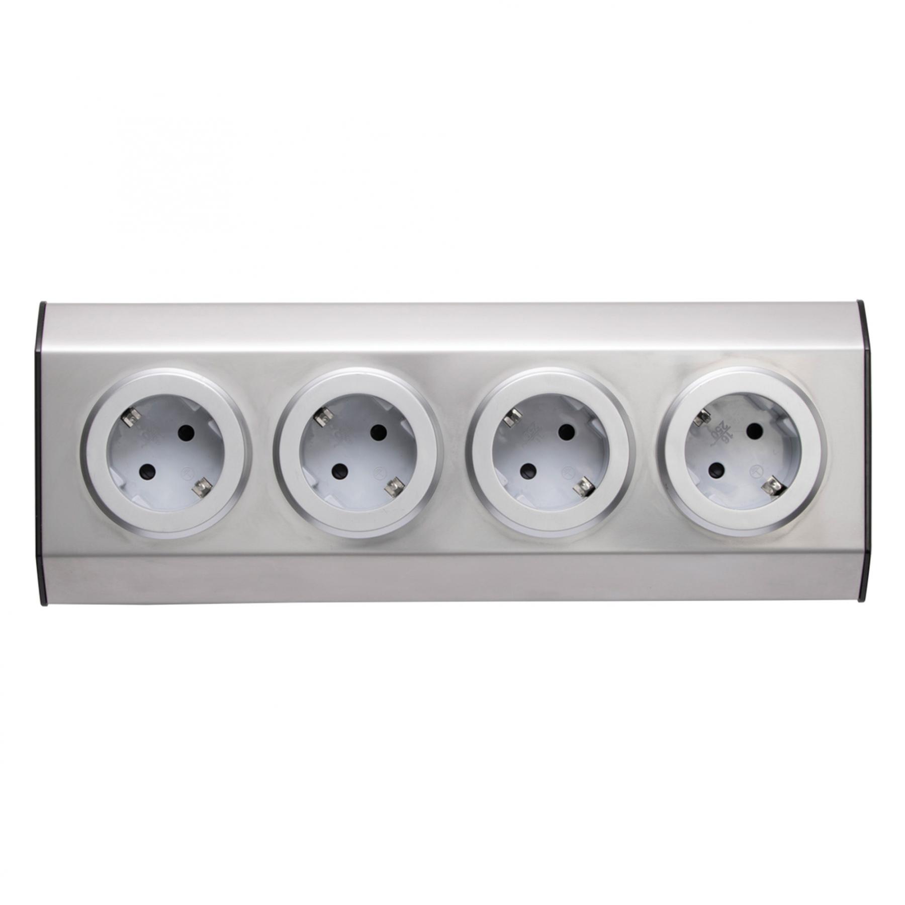 A KNV 04 Szerelhető konyhai elosztó rozsdamentes acél kivitelben készült, 4 db földelt aljzattal. A biztonságos használat érdekében gyermekvédelemmel ellátott. Maximum 3680 W-ig terhelhető. Praktikus kialakításának köszönhetően elhelyezheti vízszintesen vagy függőlegesen falra, sarokba, pultra, de akár felső szekrény alá is konyhájában. Rögzítheti öntapadós tépőzárral vagy csavarokkal.
