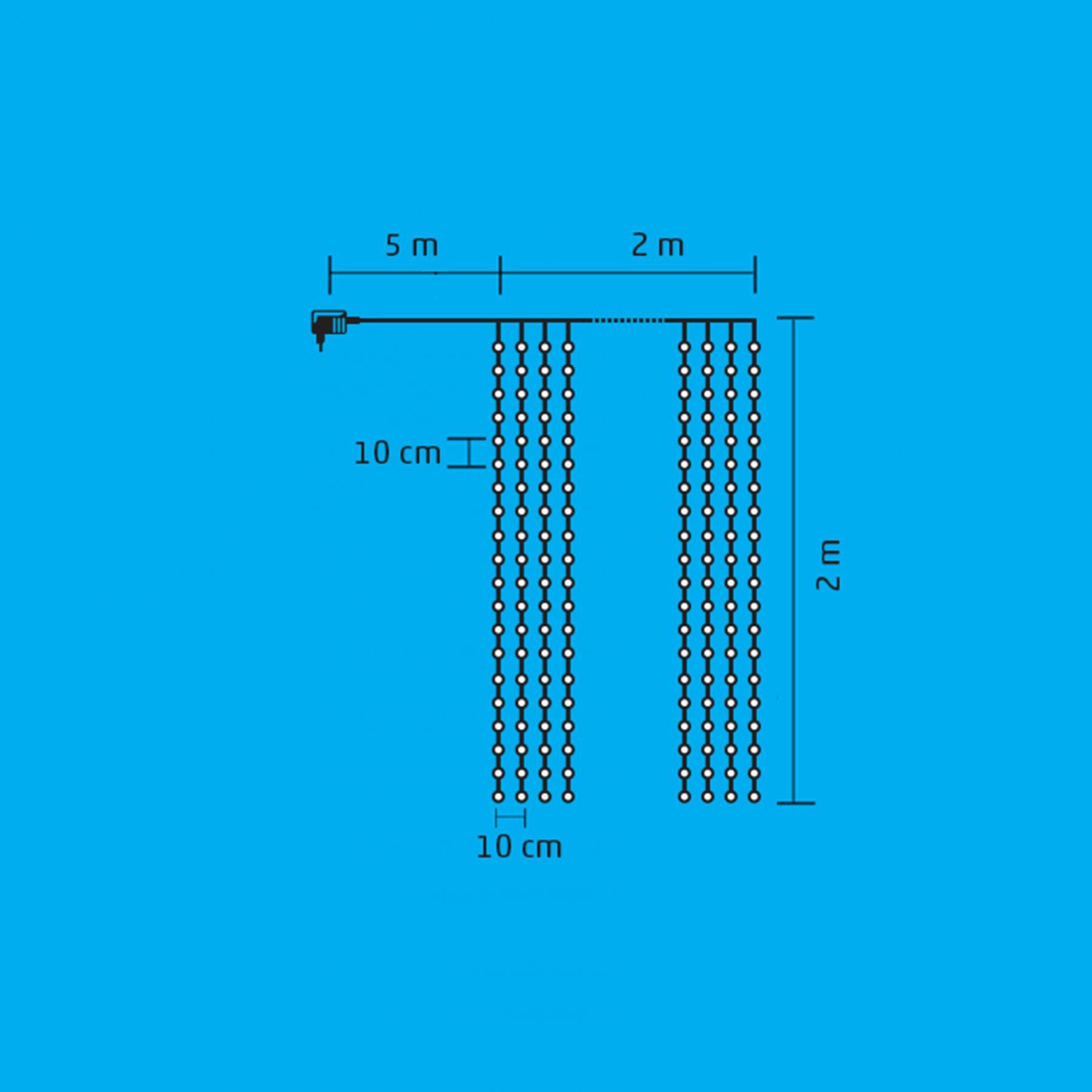 Ez a 2x2 méteres fényfüggöny 400 darab micro LED-et tartalmaz, amelyek meleg fényt árasztanak, így ideális választás ünnepi dekorációhoz, esküvőkhöz, partikhoz, vagy akár mindennapi használatra. A fényfüggöny átlátszó vezetéke diszkréten simul a környezetébe, így a fények kerülnek a fókuszba, kiemelve a dekoráció szépségét. A LED-ek közötti 10 cm távolság biztosítja, hogy a fények egyenletesen oszlanak el, és egységes fényhatást érnek el a teljes 2x2 méteres felületen. A 10 cm-es füzértávolság tovább fokozza a fényelosztást, így a fényfüggöny látványos, de mégis harmonikus marad.