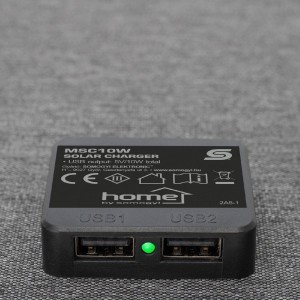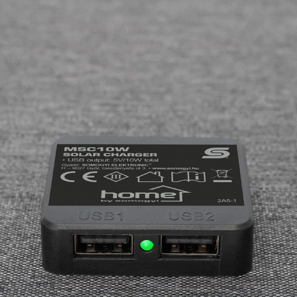 A HOME MSC10W hordozható napelemes USB töltő egy praktikus, környezetbarát megoldás, amely lehetővé teszi, hogy útközben is energiát biztosítson készülékei számára. Az összecsukható és hordozható kialakítású töltő ideális választás kirándulásokhoz, kempingezéshez, vagy akár napi használatra. A 10 W teljesítményű monokristályos napelemek gyors és hatékony töltést biztosítanak, miközben a környezetvédelem jegyében működnek – kizárólag fényenergia felhasználásával.