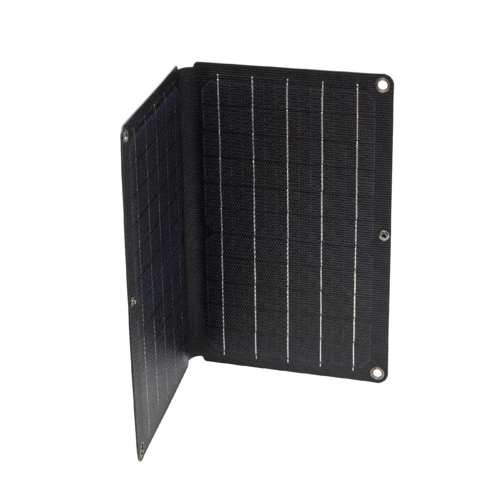 A helytakarékos, összecsukható dizájn lehetővé teszi, hogy a töltőt bárhová magával vigye. Az eszköz gyűrűkkel felakasztható, és a csomagban található két rugós karabinerrel gyorsan rögzíthető hátizsákra, sátorra vagy bármilyen más felületre. A töltésjelző LED segítségével könnyedén ellenőrizheti a töltési folyamatot.