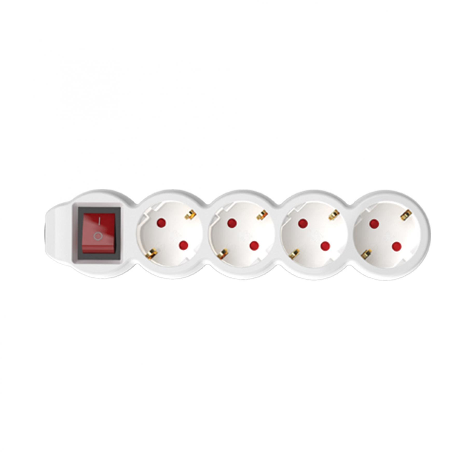 Az NV 4K/WH Kapcsolós hálózati elosztó 4 db aljzattal ellátott, melyet egy fő kapcsolóval áramtalanítani tud. A biztonságos használat érdekében IP 20 védelemmel és gyermekvédelemmel ellátott. A fehér színű elosztó 1,5 m hosszú H05VV-F 3G1,0 mm2 kábellel felszerelt. Maximum 3500 W-ig terhelhető.