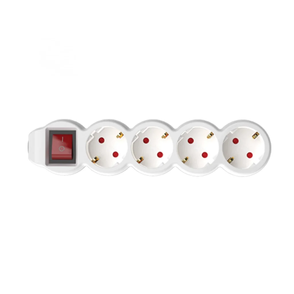 Az NV 4K/WH Kapcsolós hálózati elosztó 4 db aljzattal ellátott, melyet egy fő kapcsolóval áramtalanítani tud. A biztonságos használat érdekében IP 20 védelemmel és gyermekvédelemmel ellátott. A fehér színű elosztó 1,5 m hosszú H05VV-F 3G1,0 mm2 kábellel felszerelt. Maximum 3500 W-ig terhelhető.