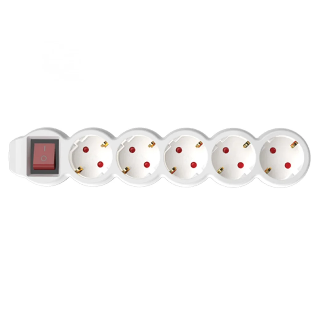 Az NV 5K/WH Kapcsolós hálózati elosztó 5 db aljzattal ellátott, melyet egy fő kapcsolóval áramtalanítani tud. A biztonságos használat érdekében IP 20 védelemmel és gyermekvédelemmel ellátott. A fehér színű elosztó 1,5 m hosszú H05VV-F 3G1,0 mm2 kábellel felszerelt. Maximum 3500 W-ig terhelhető.
