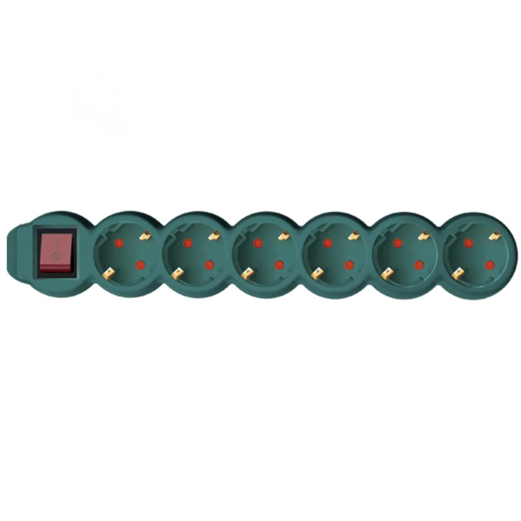 Az NV 6K-5/GR/1,5 Kapcsolós hálózati elosztó 6 db aljzattal ellátott, melyet egy fő kapcsolóval áramtalanítani tud. A biztonságos használat érdekében IP 20 védelemmel és gyermekvédelemmel ellátott. A zöld színű elosztó 5 m hosszú H05VV-F 3G1,5 mm2 kábellel felszerelt. Maximum 3500 W-ig terhelhető.