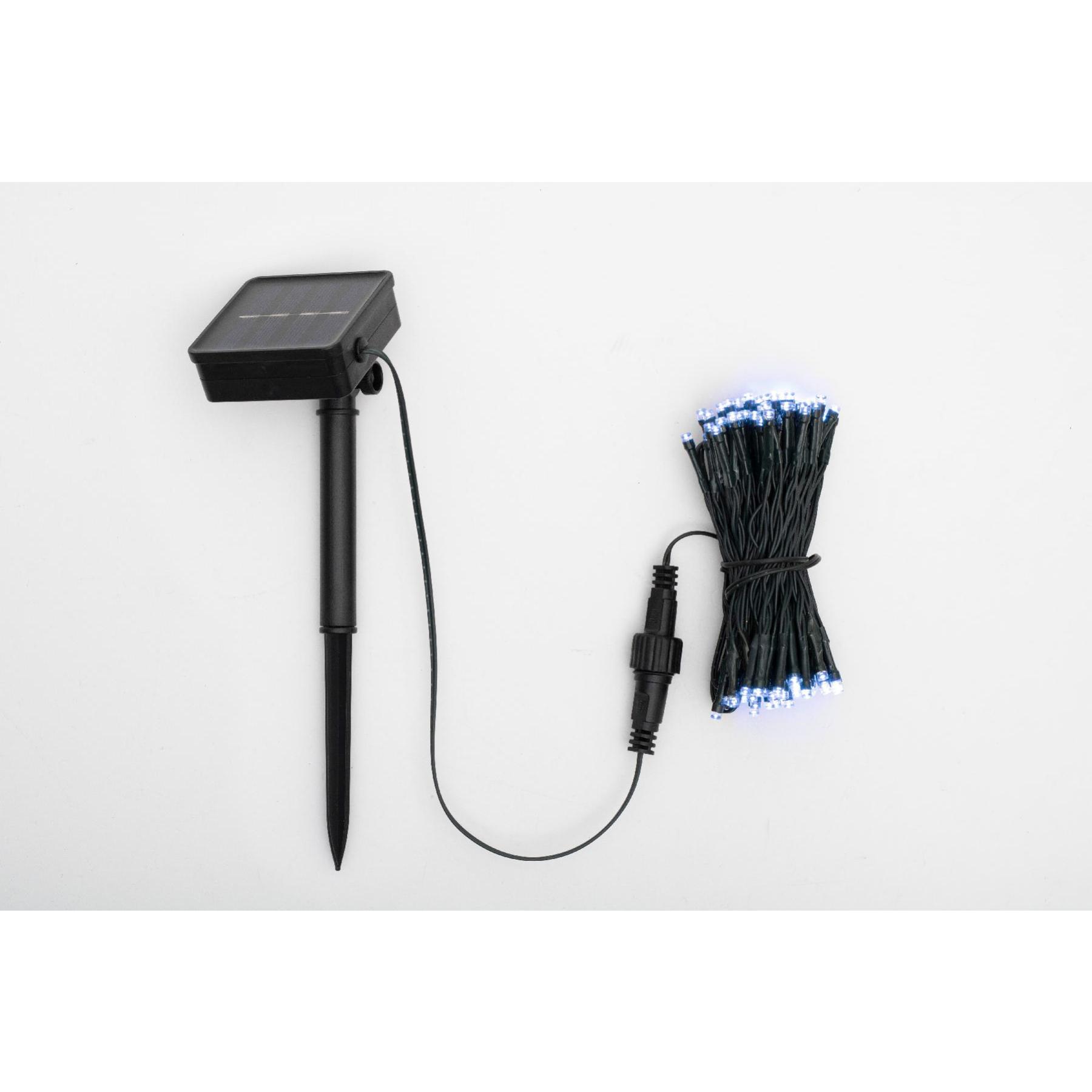 A fényfüzér 100 darab hidegfehér LED-del rendelkezik, amelyek 7 cm-es távolságban helyezkednek el a 7 méter hosszúságú zöld vezetéken. Ez az árnyalat tökéletesen illeszkedik a természetes környezethez, legyen szó bokrokról, kerítésről vagy pergoláról. A 2 méter hosszúságú tápkábel lehetővé teszi a szolár panel optimális elhelyezését a napos területen, így biztosítva a maximális töltést és működést.